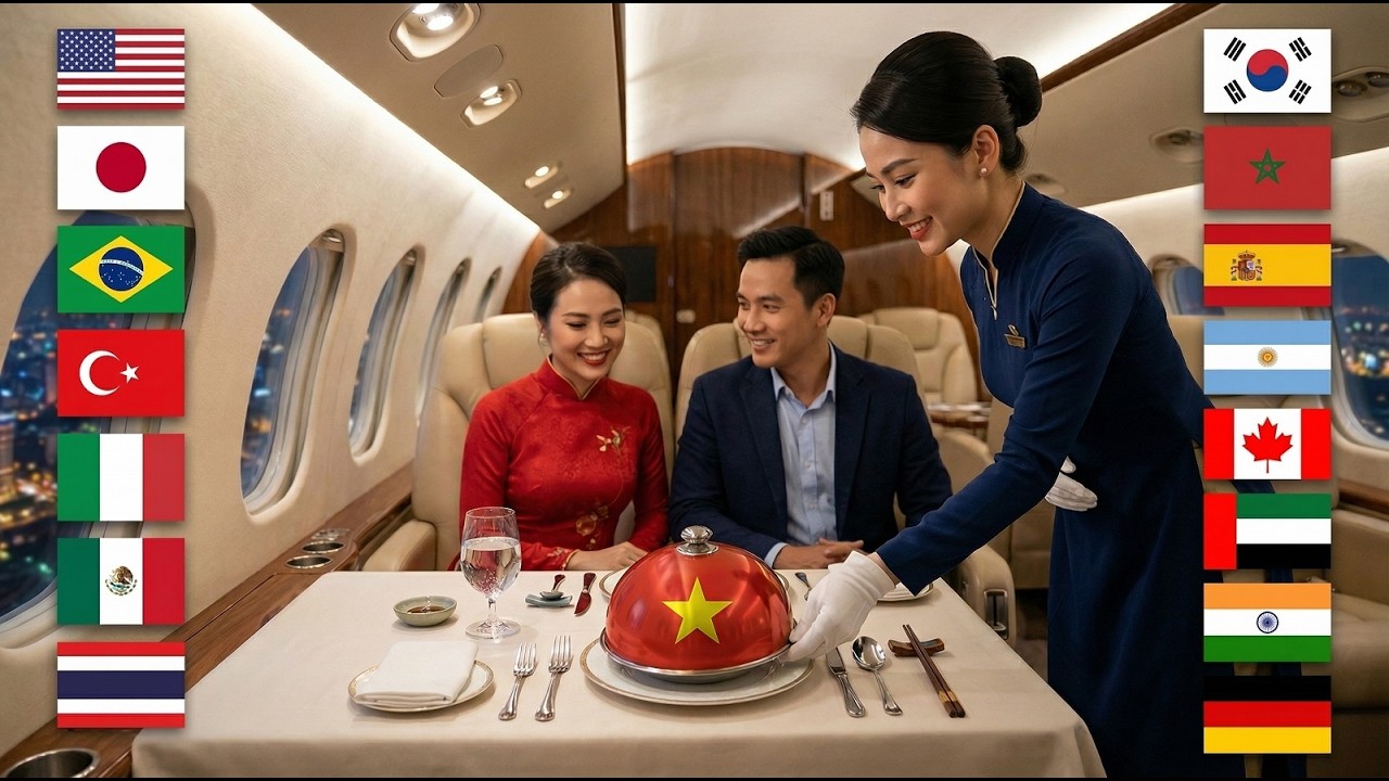 In this video we travel across 30 different countries, where each destination reveals a unique national dish served inside a billionaire-style private jet.