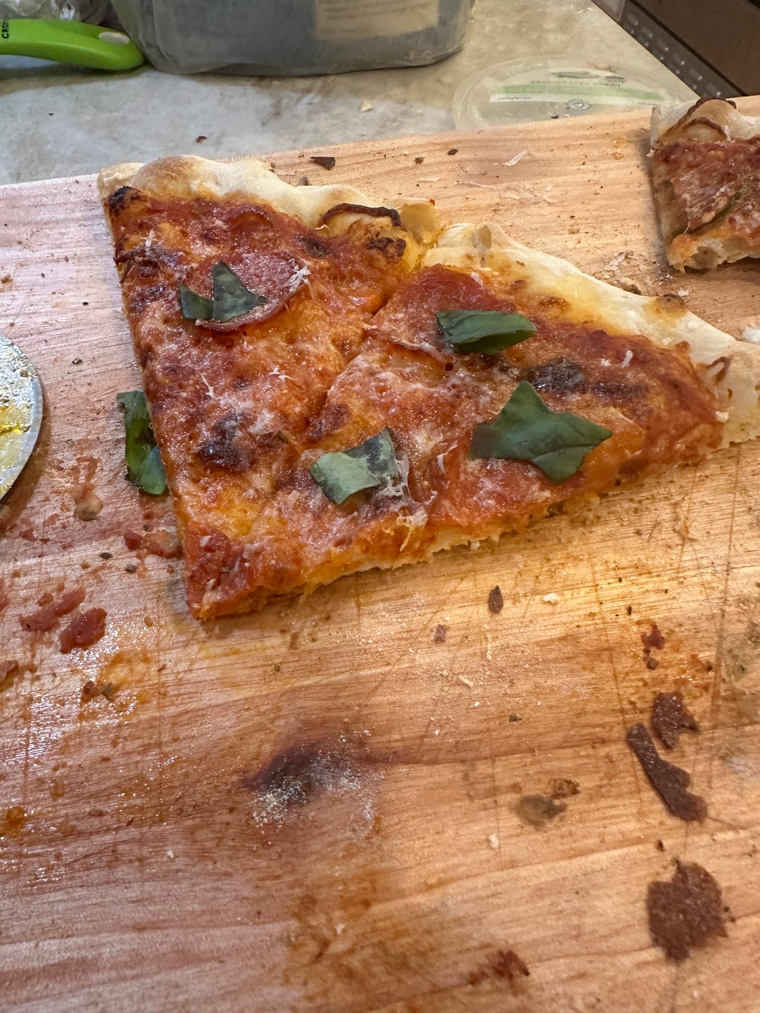 Pizza is a little misshaped, didn’t slide off onto the stone correctly. Tasted delicious, as you can see my family could not wait to dig in and i wasn’t able to get a fresh out of the oven pic.