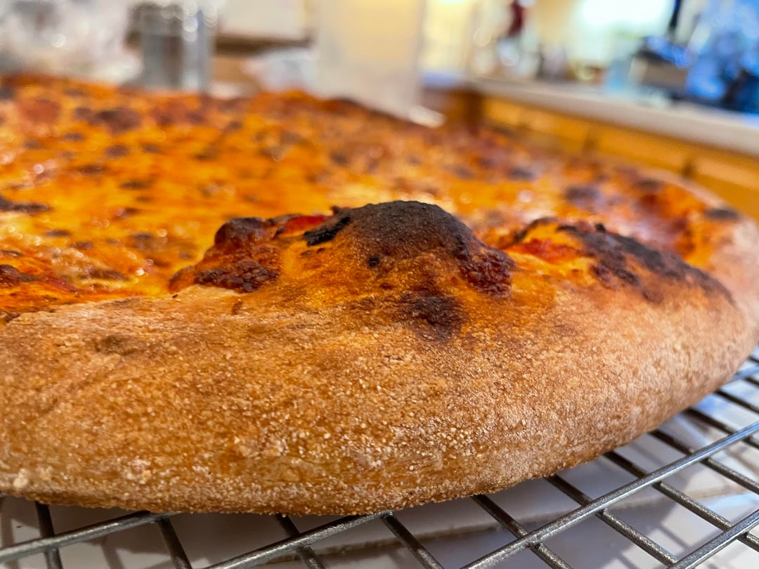 “Spicy White” and Roasted Mushroom, Calabrian Chili, and Pepperoni from Chrissy’s Pizza