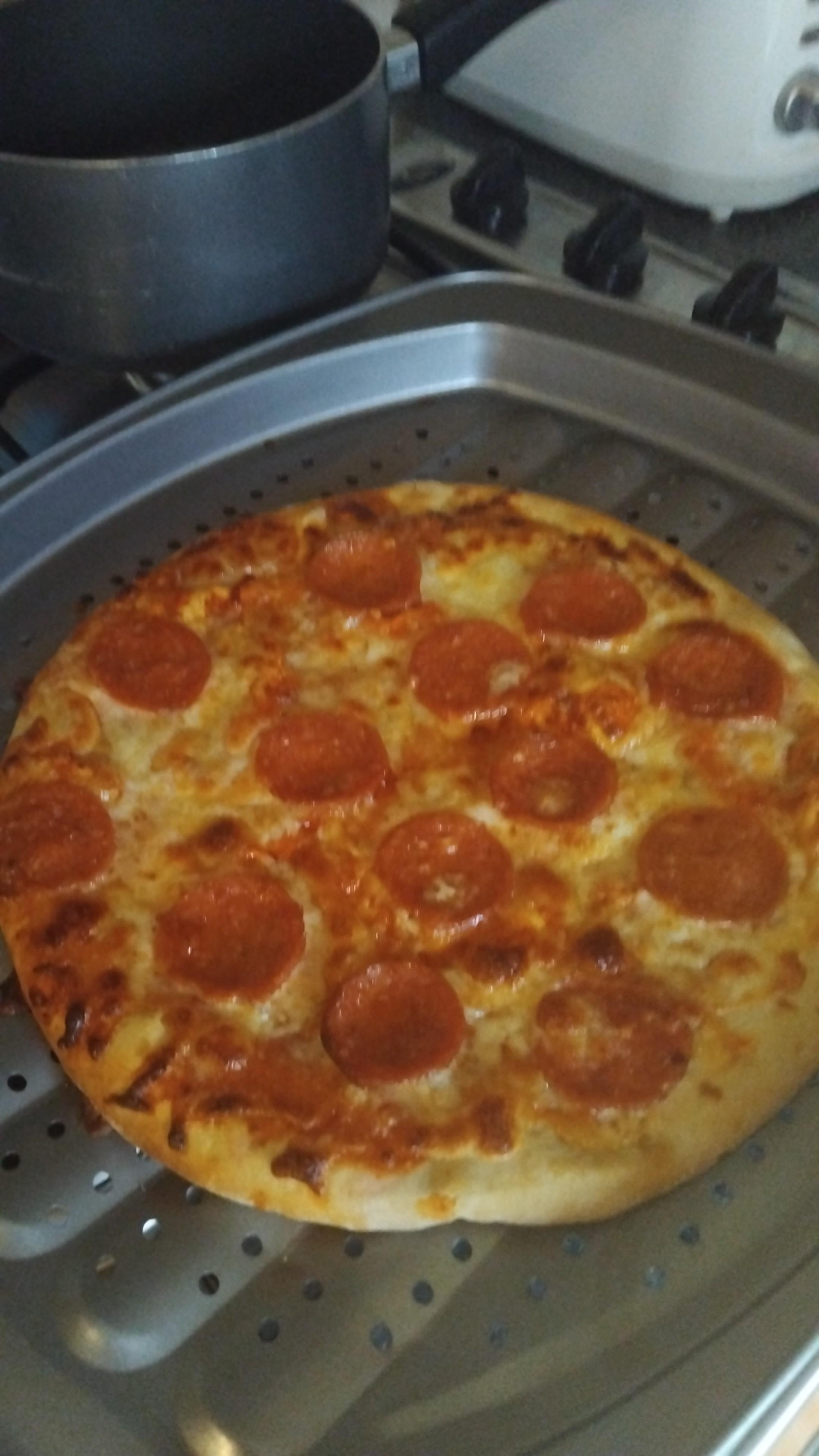 Pre cooked lidless pizza peperoni