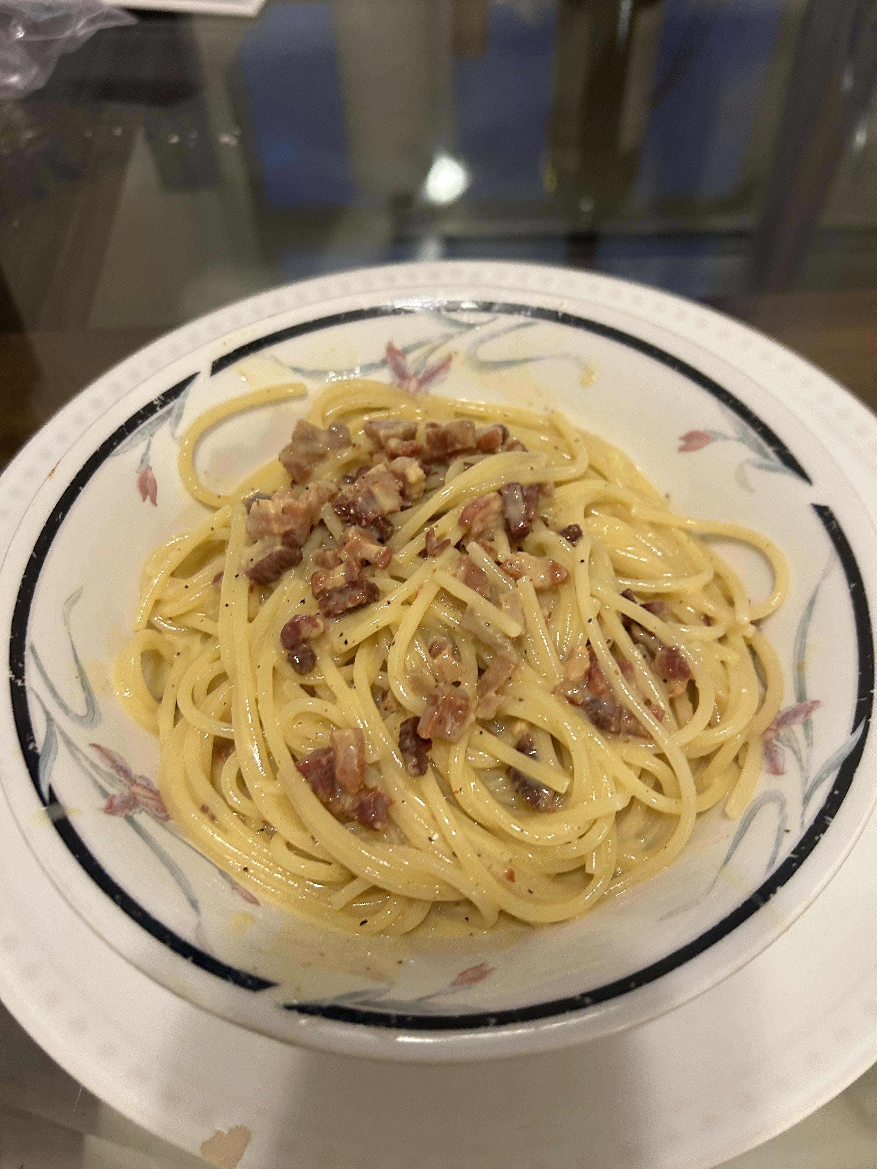 It passed the test but I think I added too much pasta water. Hence why the pancetta is resting on top because I had to ladle some of the sauce on at the endby Ango-Globlogian Homemade DishPasta 1 Comment RealComfortable9205 1 hour ago Yummy 🤌Write A CommentYou must be logged in to post a comment.