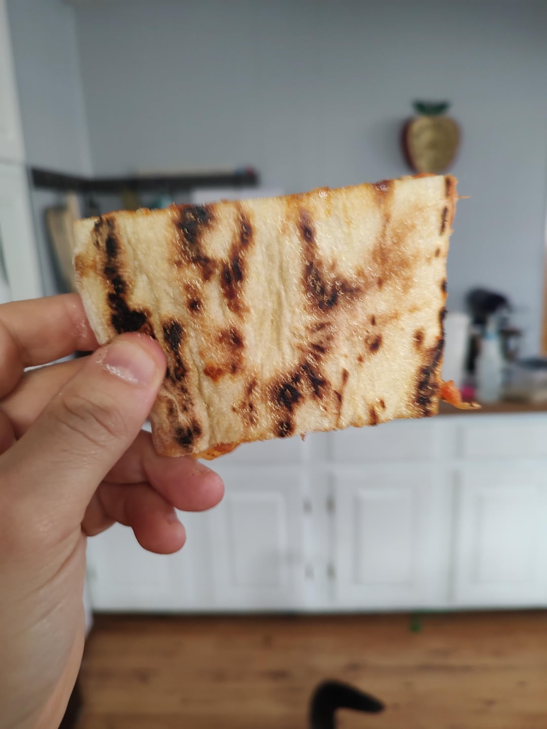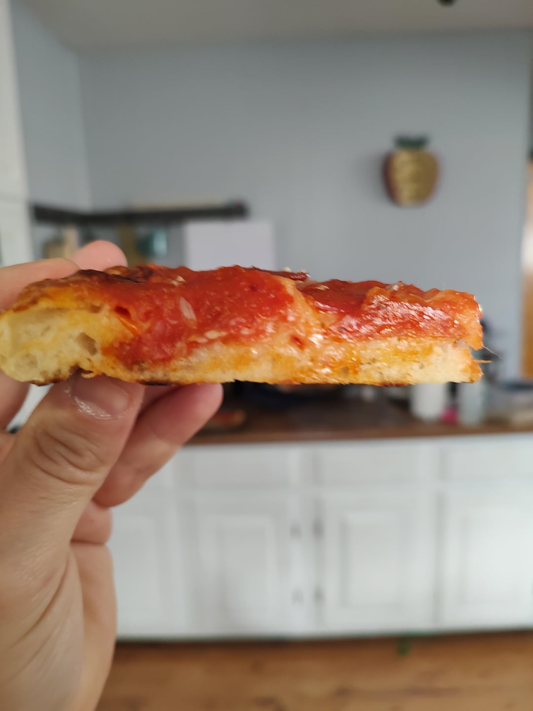 My guess is I use too much yeast because my scale doesn't measure decimals, just whole grams, but I'm wondering if thin and crispy requires other tricks. I've done it before but it's not consistent. I'm also using a wetter dough, maybe that's a problem.