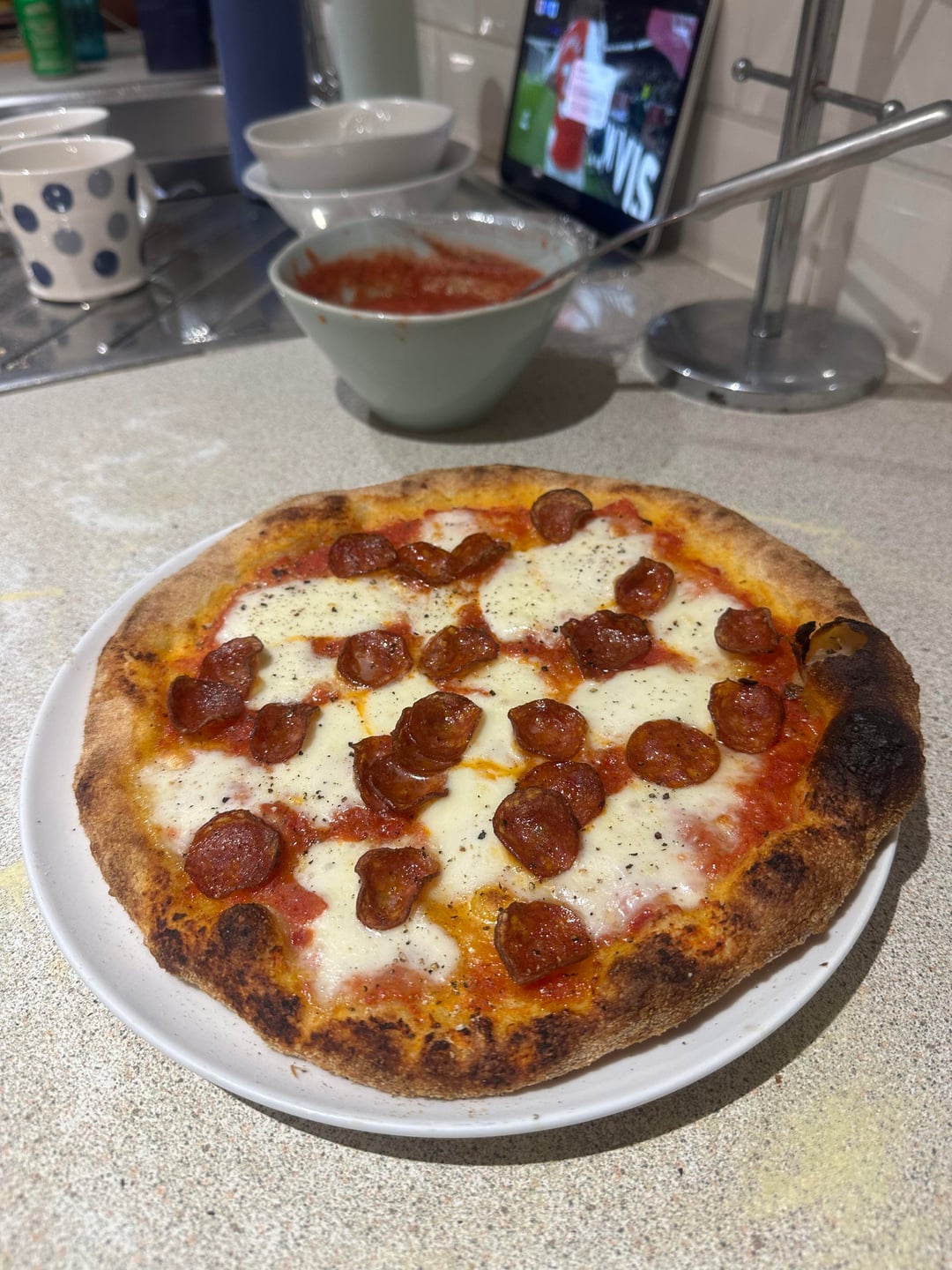 New to pizza making. Got a feeling this over proofed but not sure as not had an over proof yet? Did a 2 hour room temp ferment after kneading, then 24 hours in the fridge. Started rising out of the bowl during the fridge ferment (as seen in photo 1). Took it out today after 24 hours, left another 3 hours at room temp and got these big bubbles (photo 2) and a very airy feeling under the top of the dome. It was quite soft when shaping but not awful, and when cooked, it was airy, but not that airy compared to some I’ve done the last few weeks. It also had very little flavour and tasted a bit like a cheap supermarket pizza. Is this what over proofed dough sounds and looks like?