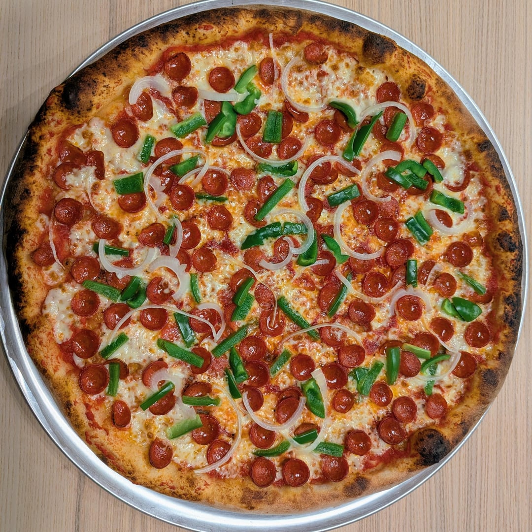 20" NY Style pizza for pi day. 62% hydration 72 hour cold ferment with natural casing pepperoni, green pepper and onion. by iheartbicycles outdoor ovenpizza 1 Comment Hamburgerfun 3 hours ago this looks absolutely delicious and iโm picky with my toppings but i want to try eating green peppers.Write A CommentYou must be logged in to post a comment.