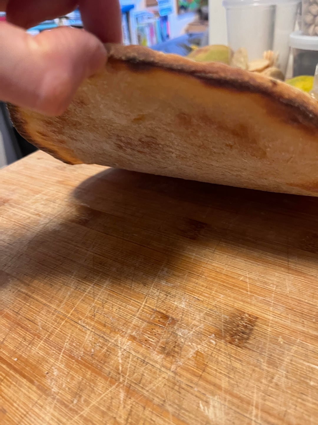 Rested 3 days in the fridge then it was frozen for a few weeks. On the counter to thaw for about 10 hrs before stretching and baking.