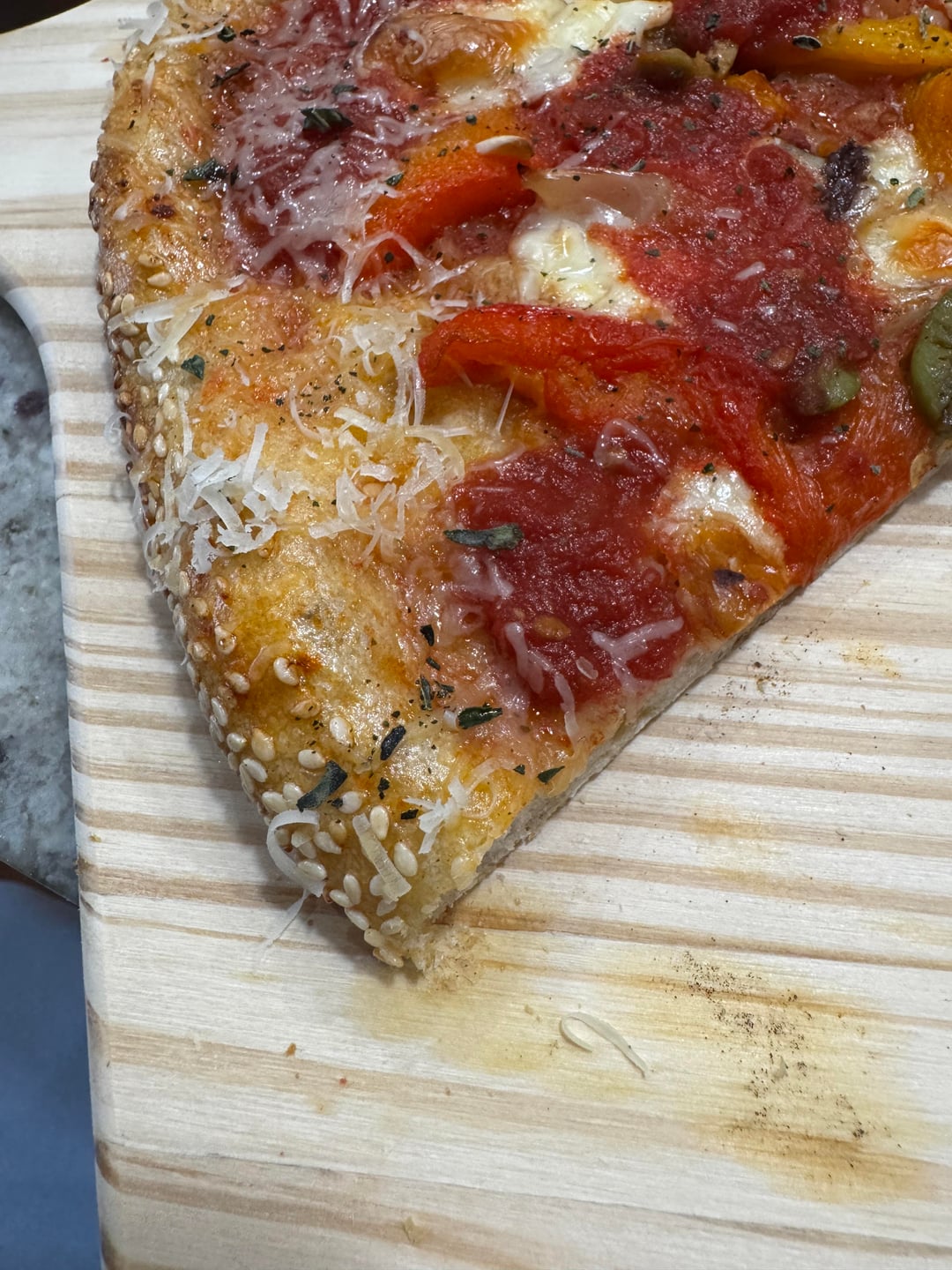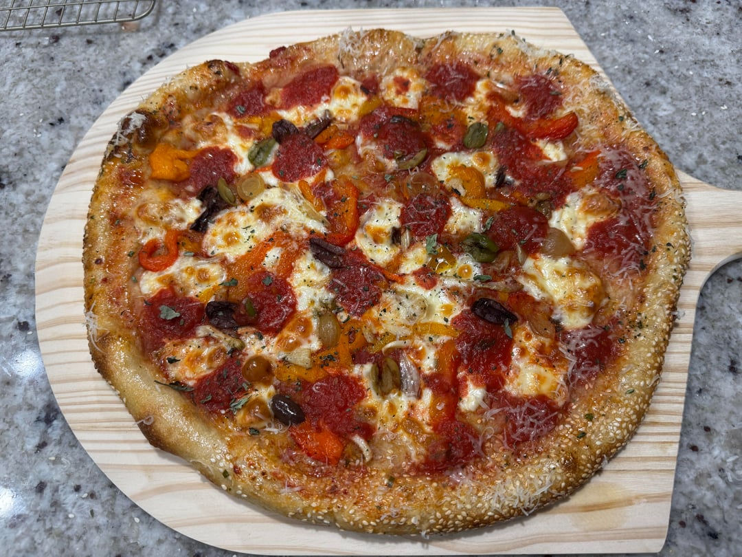 Pizza looks delicious but how have I never considered sesame seeds on the crust. Feels cursed lmao