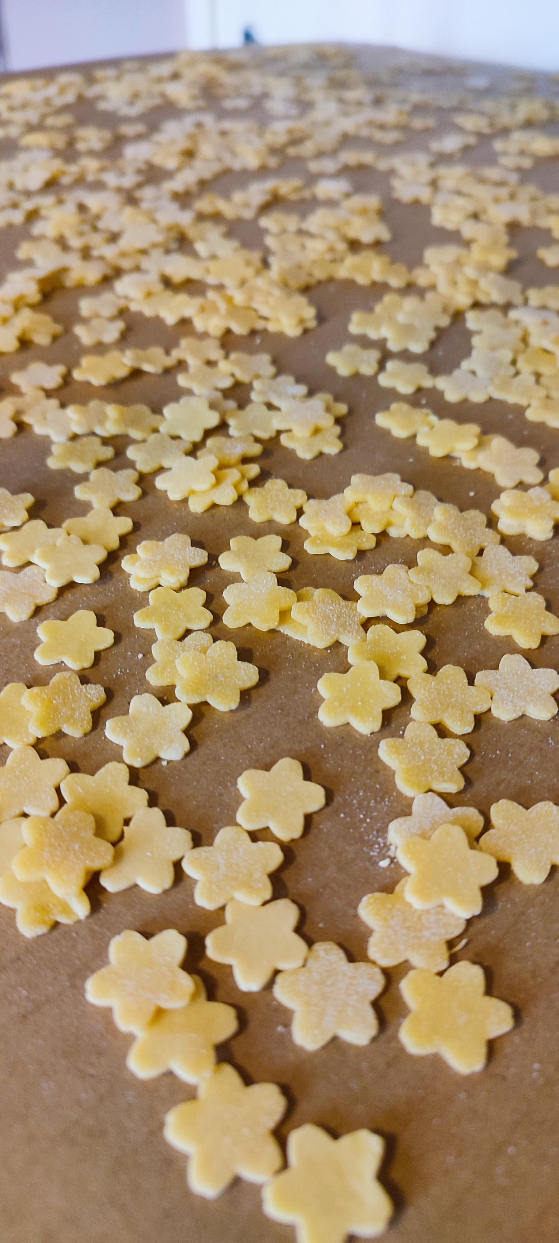500g wheat flour, 5 fresh eggs, and 75g of my mature sourdough starter.