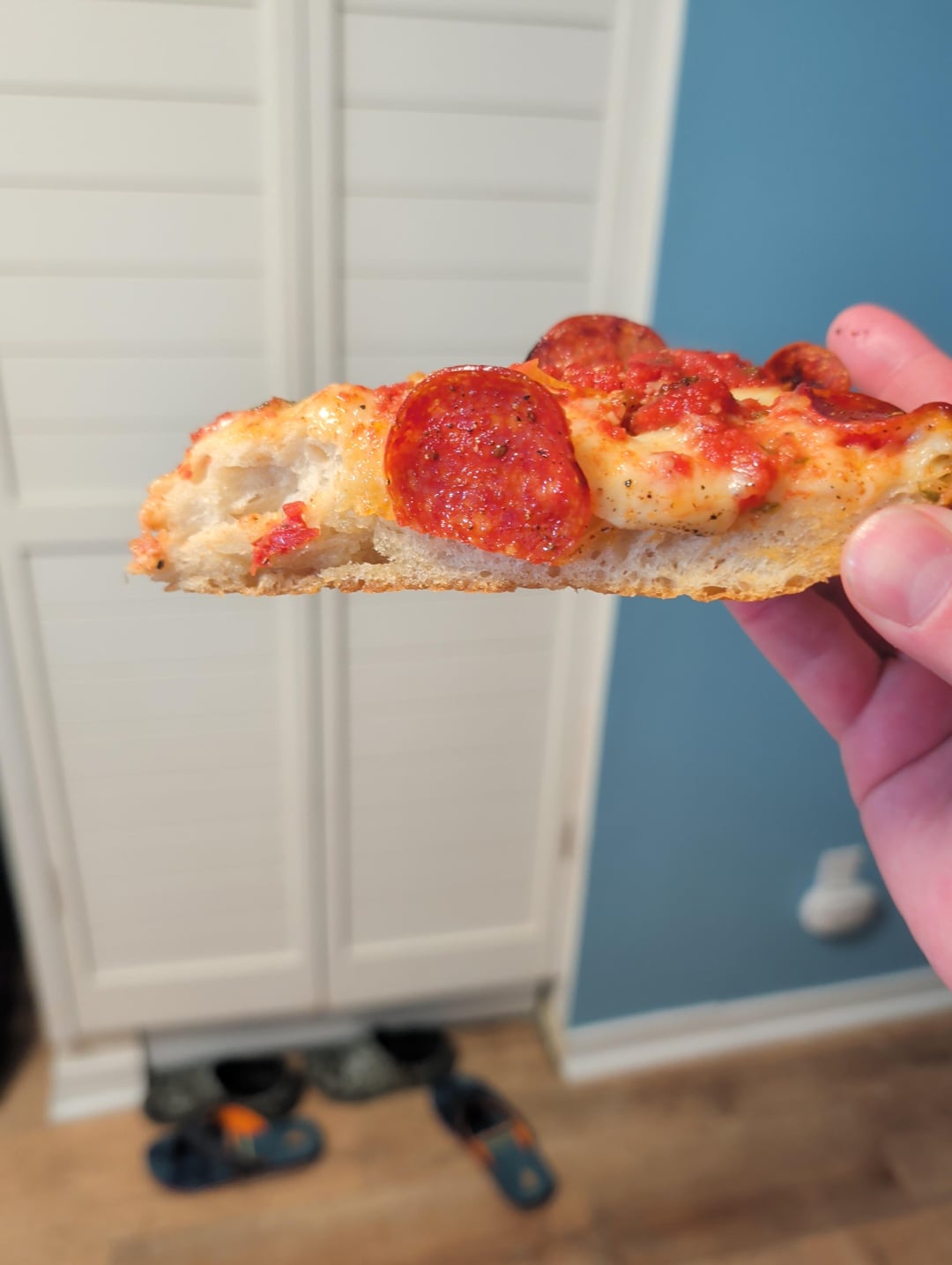 72% hydration, 24 hour cold ferment. Canned San Marzano tomatos with fresh garlic and basil. Gotta overlap that mozzarella to get that crispy cheesy edge. 500°F for ~25 minutes, bottom rack. by Hadjik NORMAL OVENpizzaWrite A CommentYou must be logged in to post a comment.