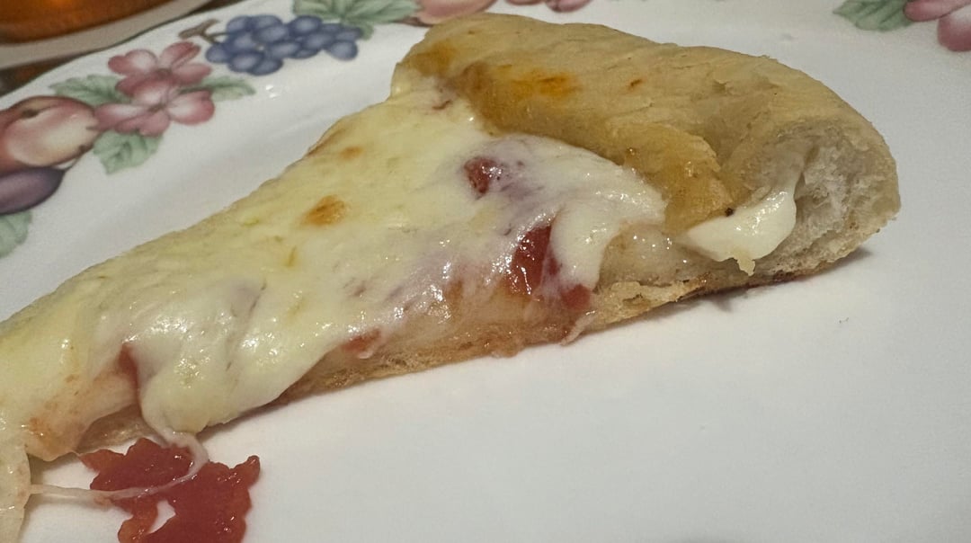 I even got a little frisky and made a stuffed crust with provolone ‘cause I ran out of mozzarella. The mozzarella is also is a cheap brand, but it’s the only thing I had.