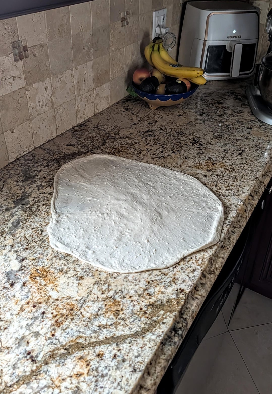 Remove the dough from the mixer, place on the counter and let it rest for 10 minutes, then stretch out the dough and laminate. Make two 270g dough balls, and let them sit for 30-45 minutes at room temperature. Then go into the fridge for 48-72 hours.