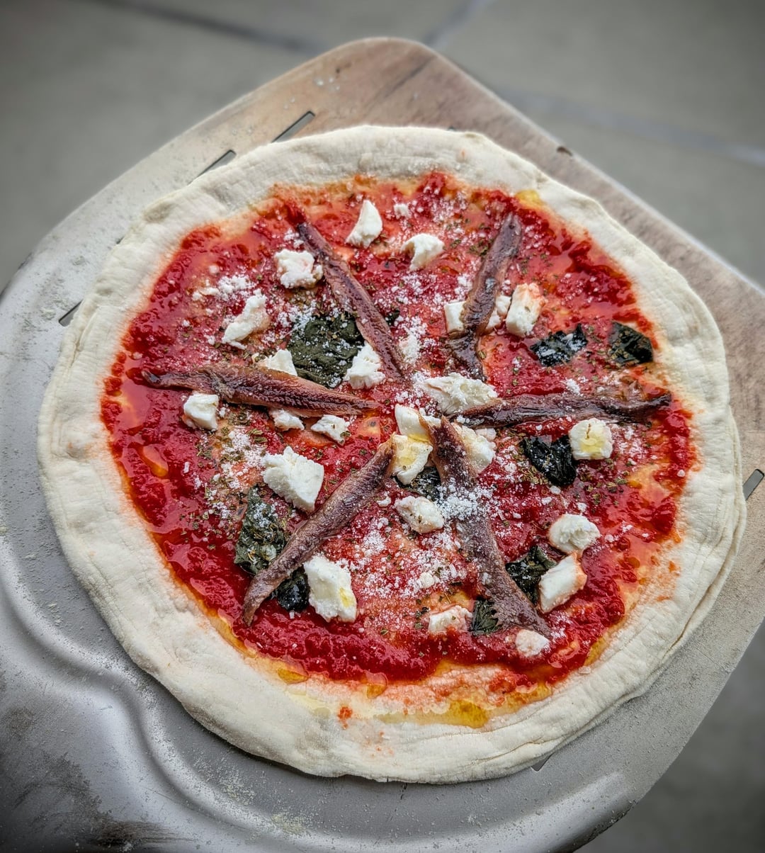 Remove 2-3 hours prior to cooking. Cooked on Gozney Roccbox @ 850f low flame for 90 total seconds.