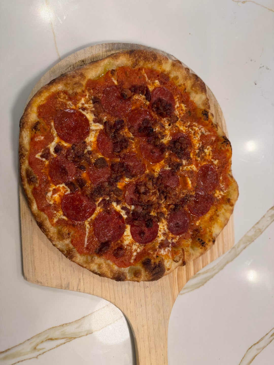 Pizza steel. Pepperoni and bacon. Homemade sauce: olive oil, tomatoes, shallots, garlic, and fresh basil.by fotank NORMAL OVENpizzaWrite A CommentYou must be logged in to post a comment.