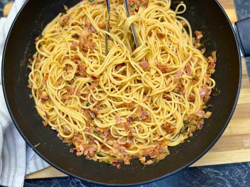 Did this one-pot bacon pasta tonight and it seriously hit the spot. Super creamy, a bit smoky from the bacon, and those sun-dried tomatoes add a really nice flavor.