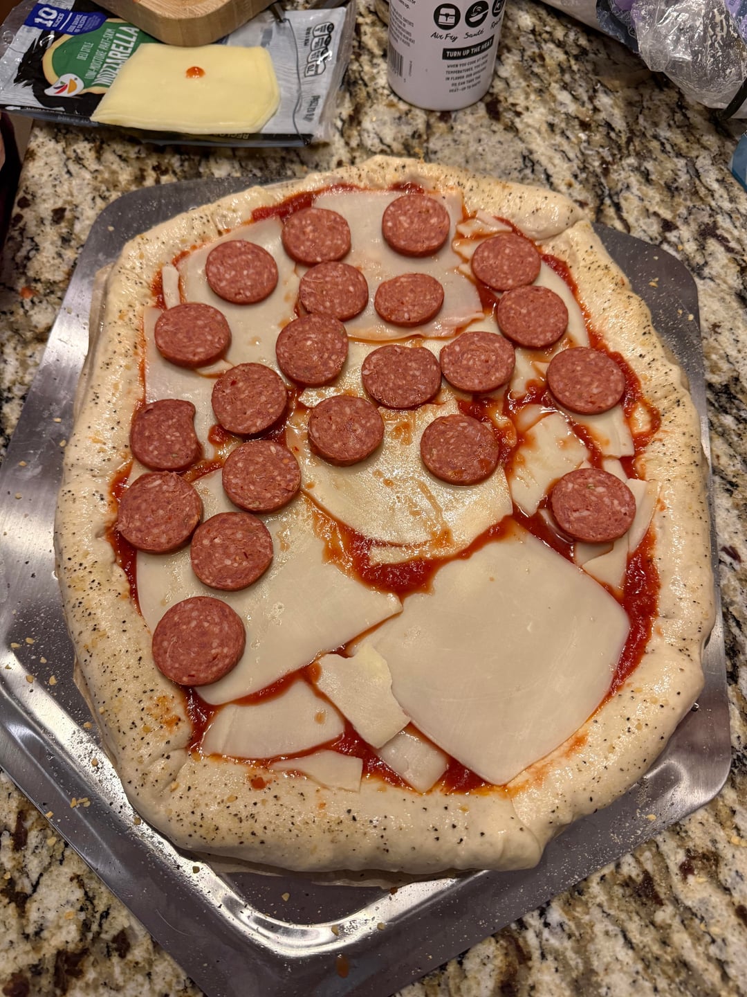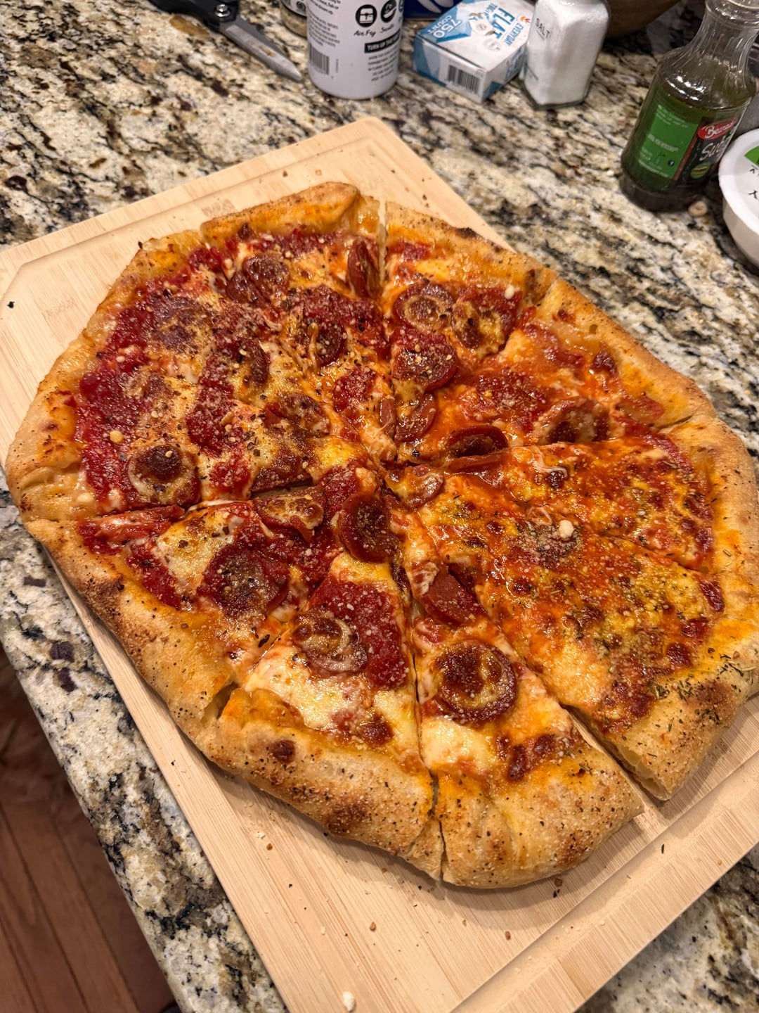 Sourdough, random can of sauce, avocado oil,kinders blend, provolone cheese crust, mozzarella, but on one side is my peps, extra provolone, chili flakes, extra sauce. Parm on all. Absolutely amazing. Can’t wait to wake up hungryby BeautifulMix7410 pizzarecipe 1 Comment Killegos 1 hour ago Hell yeah!! Good fucking job!Write A CommentYou must be logged in to post a comment.