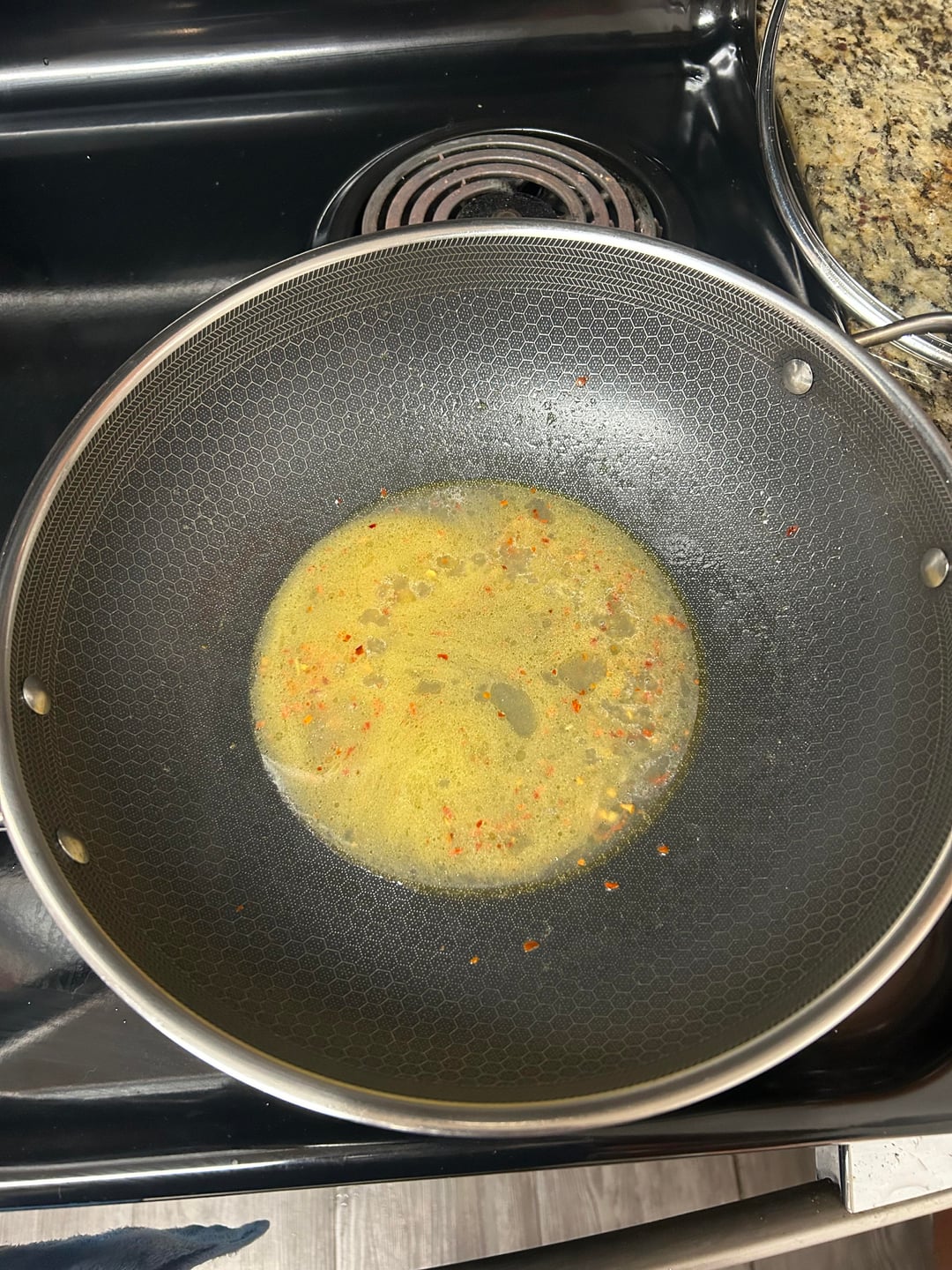 Raise the heat to high, then add clams, pepper flakes, and white wine