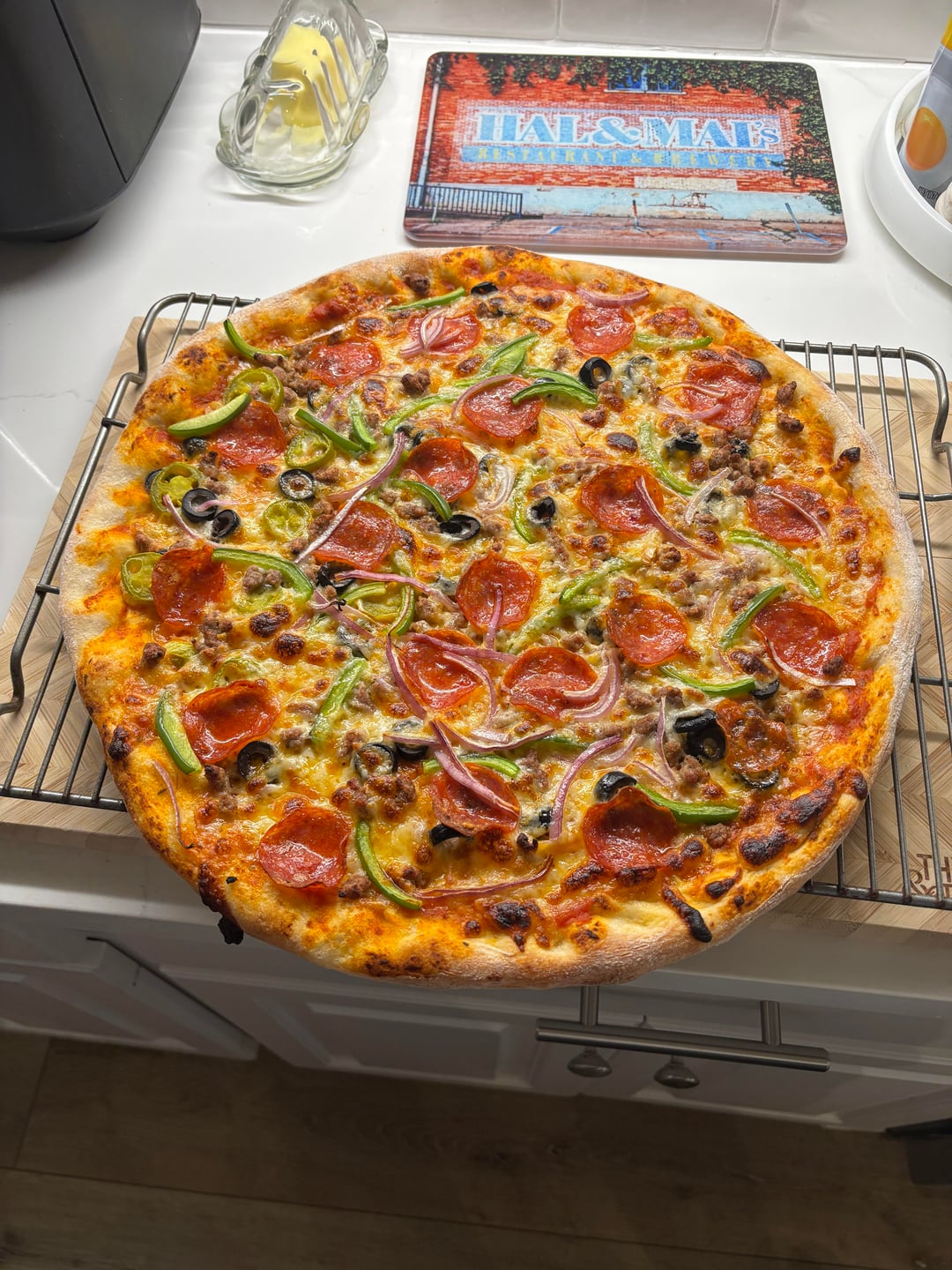 Last nights pie. NY style. Supreme inspired but forgot to get mushrooms. by justindodom NORMAL OVENpizza 1 Comment justindodom 4 hours ago 16” on a steel. Forgot to add that.Write A CommentYou must be logged in to post a comment.