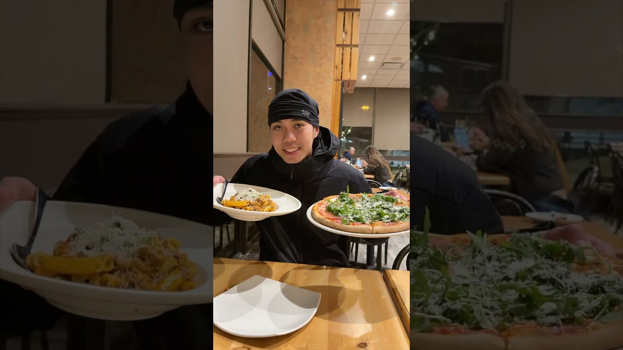 Ate at Amici and tried their braised short rib genovese with rigatoni, plus their house pizza and red wine.