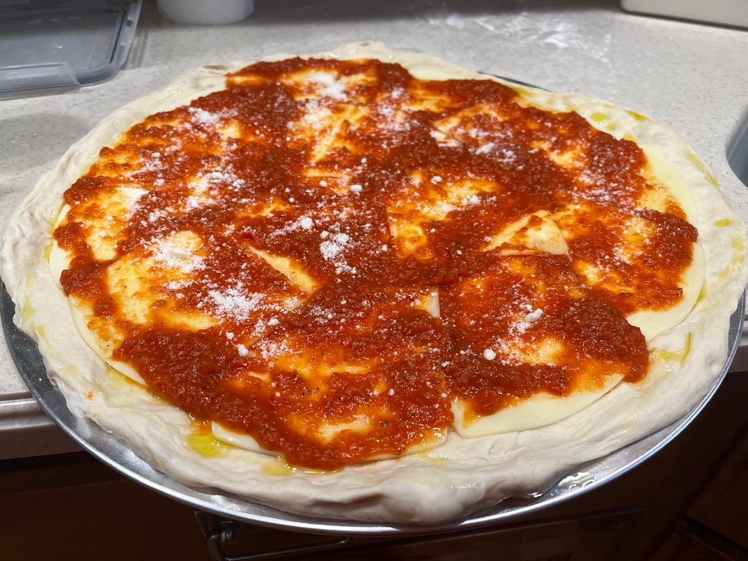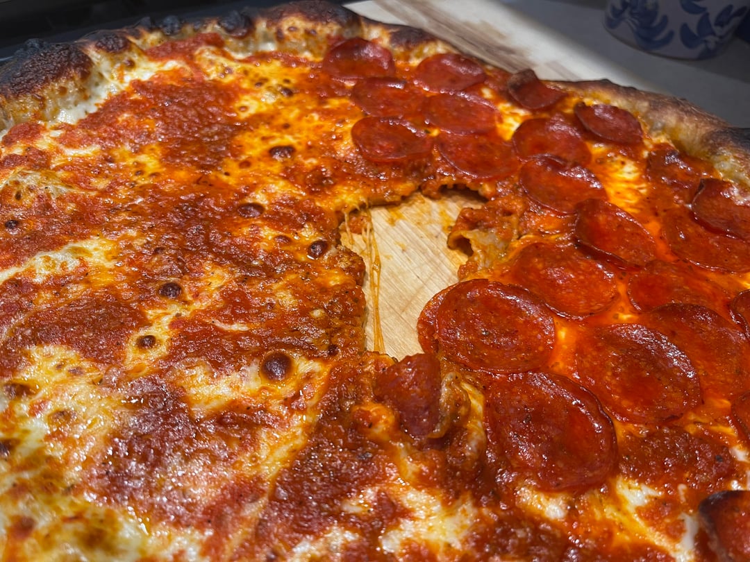 Other than that, I did sauce on top, half pepperoni. Came out pretty good, except for the whole in the middle.