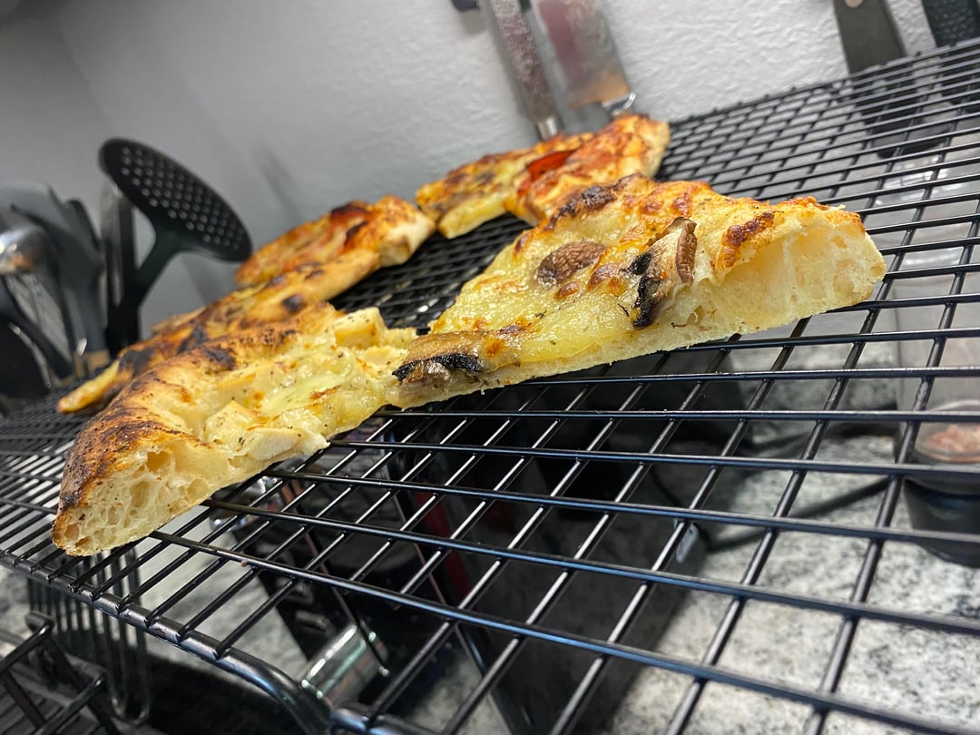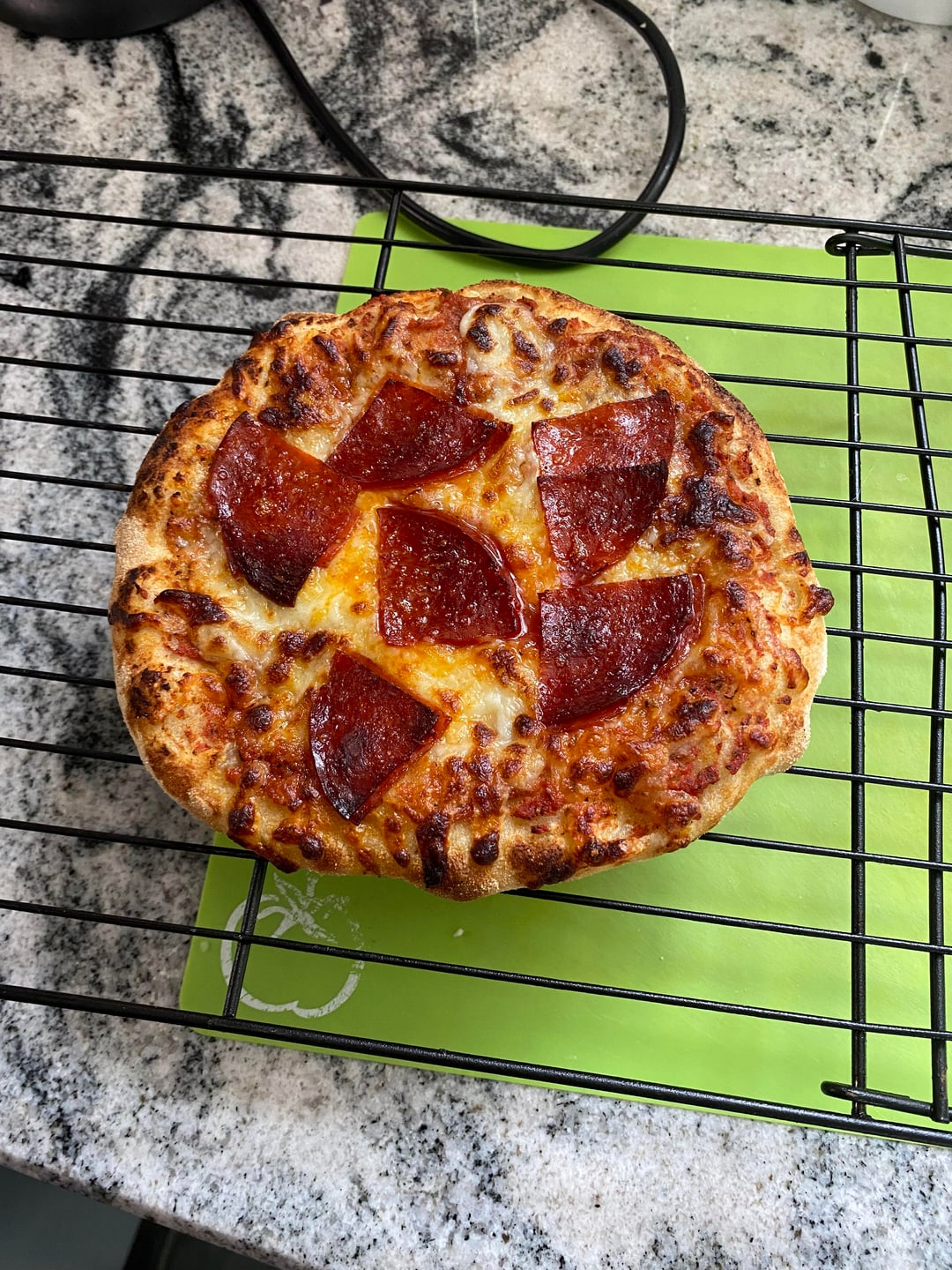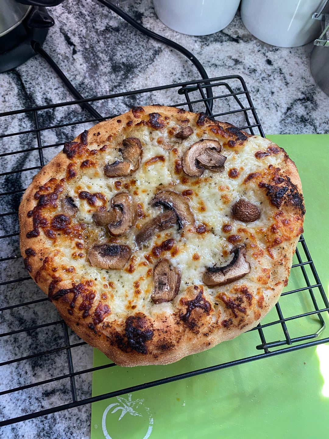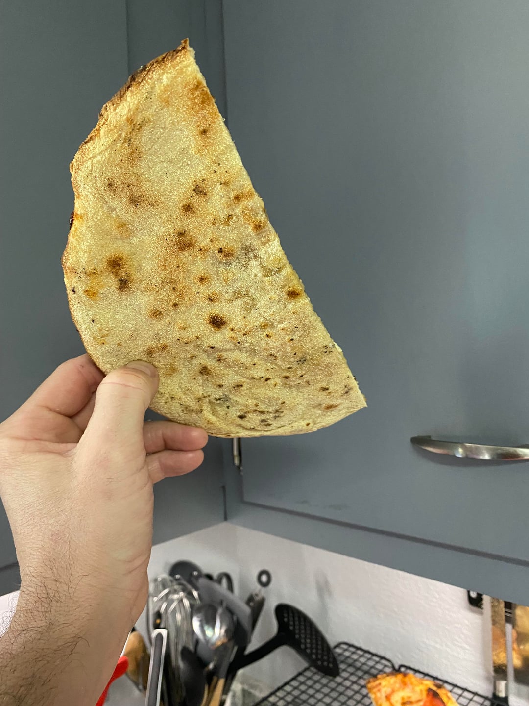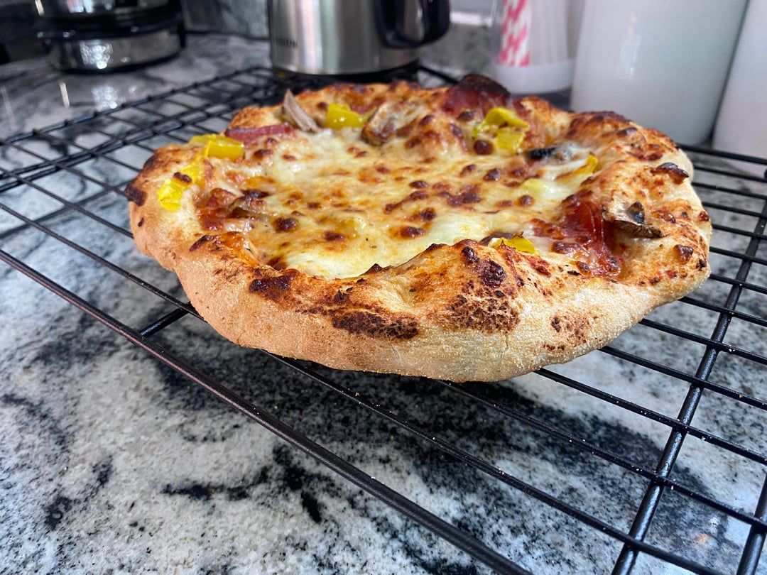 Vevor 12” gas pizza oven. This was ( and currently still is ) $120 on Amazon. I’ve used a koda 12 and a Breeo wood fired oven in the past so this isn’t my first time, BUT this is my first time using this particular oven. It is super well built. The walls of this are thick and well Insulated. It is considerably heavier than the Ooni. The flame control is actually pretty decent. It is variable but it pretty much has spots where it is high, medium, and low. At no point did I have to completely kill the flame like I sometimes do in the Ooni which was nice and also surprising. It gets plenty hot with the horseshoe burner and the heat deflectors do a good job of sending the heat right down onto the stone. My stone temp at launch ranged between 725F and 775F after about a 15 minute preheat. Recovery time between pizzas was about 5 minutes. Just enough time to get another pizza ready so it’s perfect. I found using room temp-toppings compared to refrigerator temp toppings didn’t make much of a difference . The thing that did make a difference was the temp of the sauce. Cold sauce did not allow the bottom to crisp up before the top was done . After letting the sauce come to room temp, all was good. If you zoom on the pic of the undercarriage, you can see it did get some color. It was crispy however so I wasn’t too concerned that it wasn’t brown. I did find it strange it didn’t get more brown, however that may be because of my recipe which is below this . Feel free to ask any questions. I’m not glued to my phone so it may not be instant but I’d be glad to answer .
