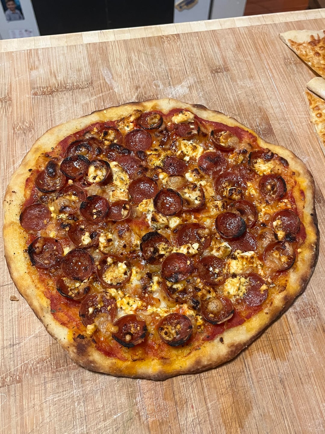 Herb + Garlic Feta was on special at the grocery store so I figured I’d try it with a classic pepperoni.