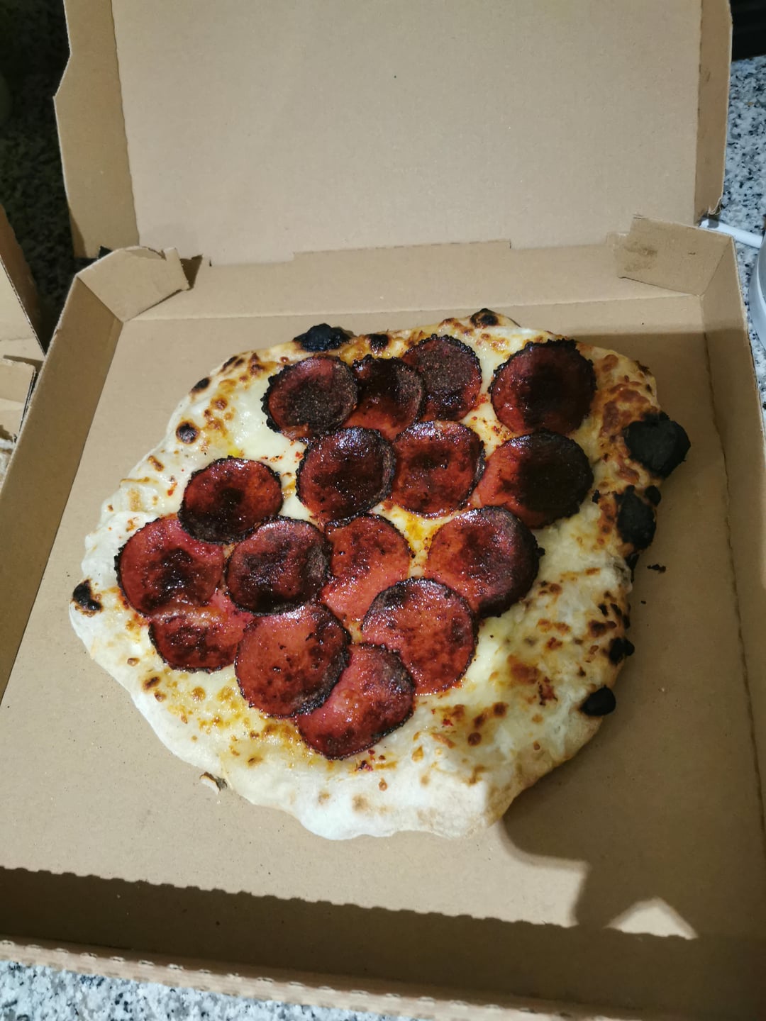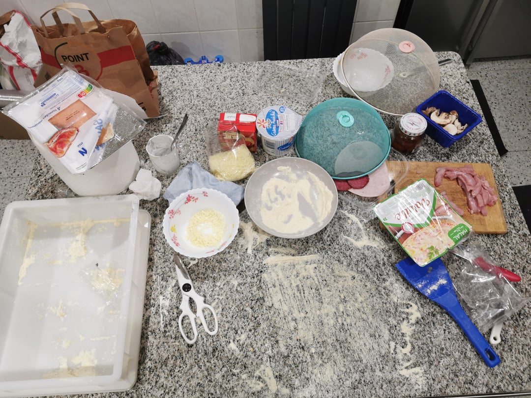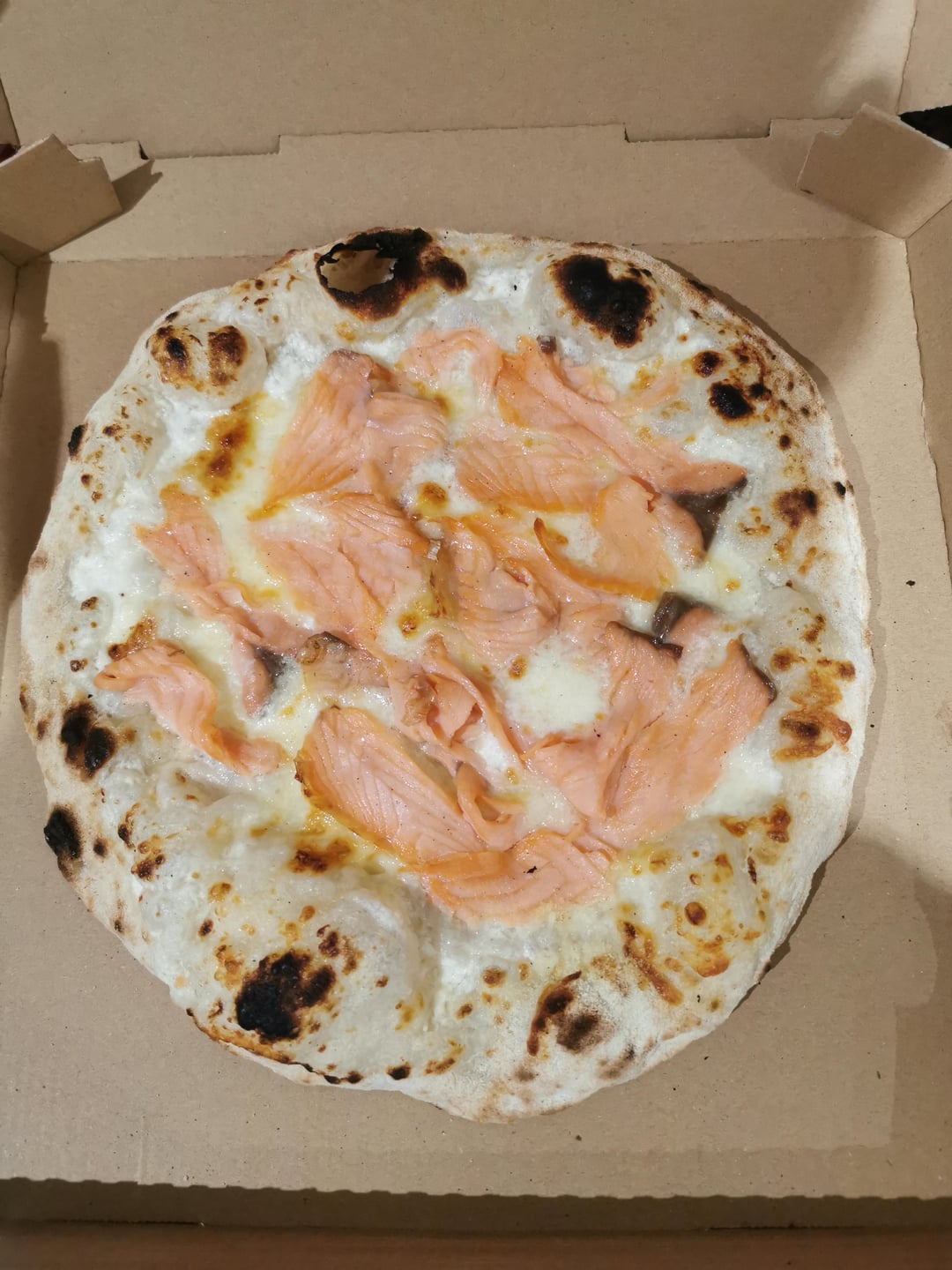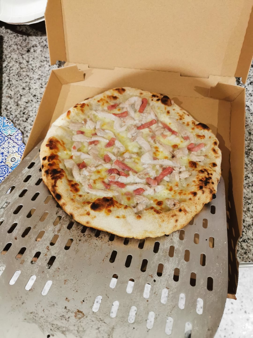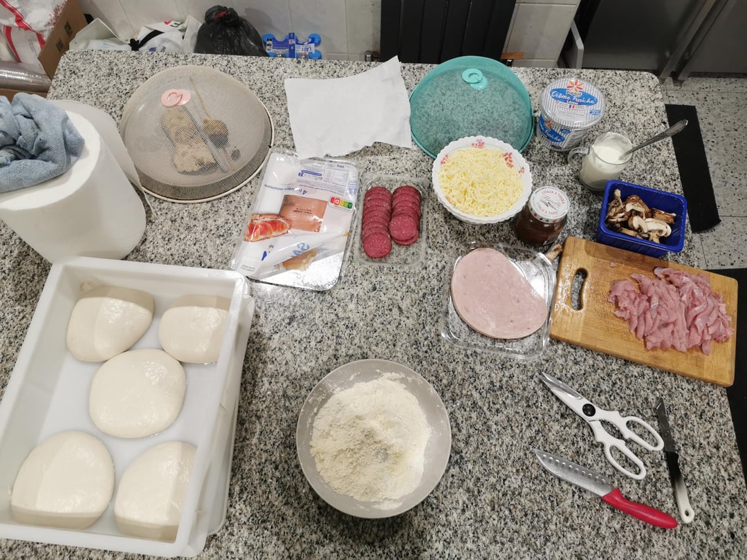 I made 5 pizzas with homemade dough that rested for 72 hours. In order: chorizo, mushroom and turkey slice, smoked salmon, Margherita, chicken and bacon