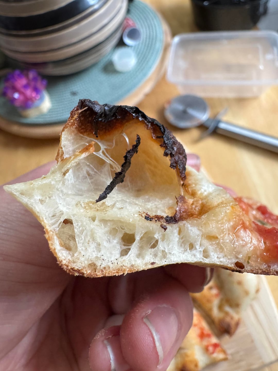 Just a quick dough sling 🙂 Testing out the new 0 flour that I purchased, I’ve also bought the pizzeria variety , of the same brand, this version so far , this most certainly more aggressive crust and more aggressive bubbling during the bulk proofing process (4 hours) , cold fermentation for 48 hours