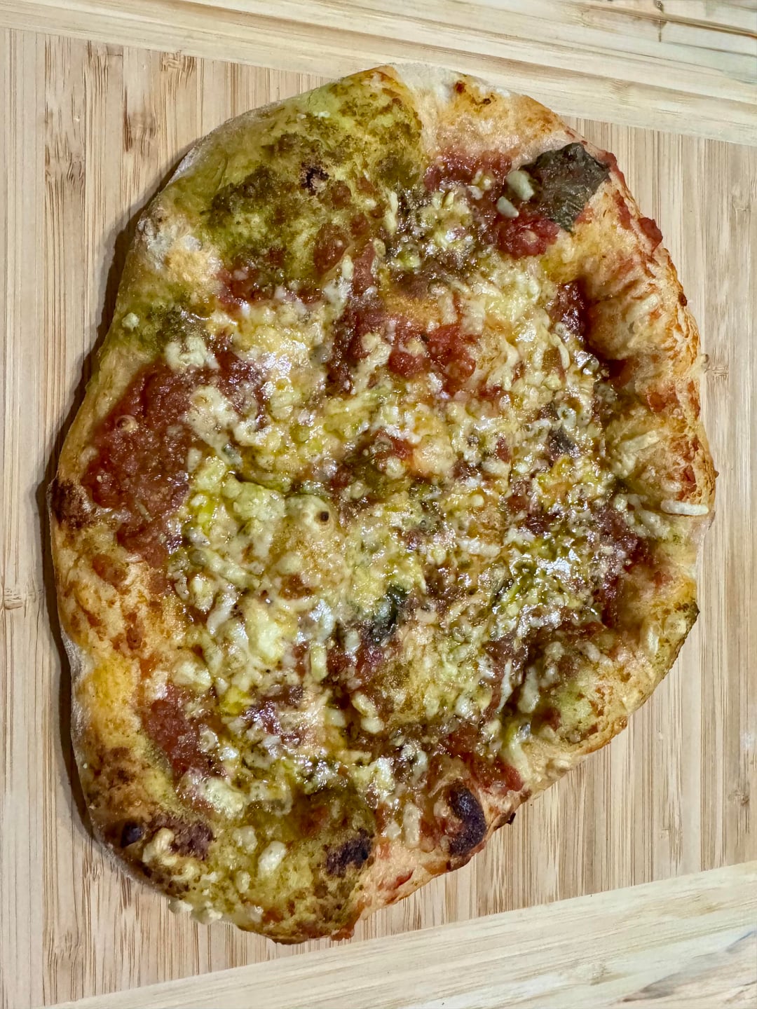 Pizza sauce and pesto splattered in with a drizzle of hot honey OMFG
