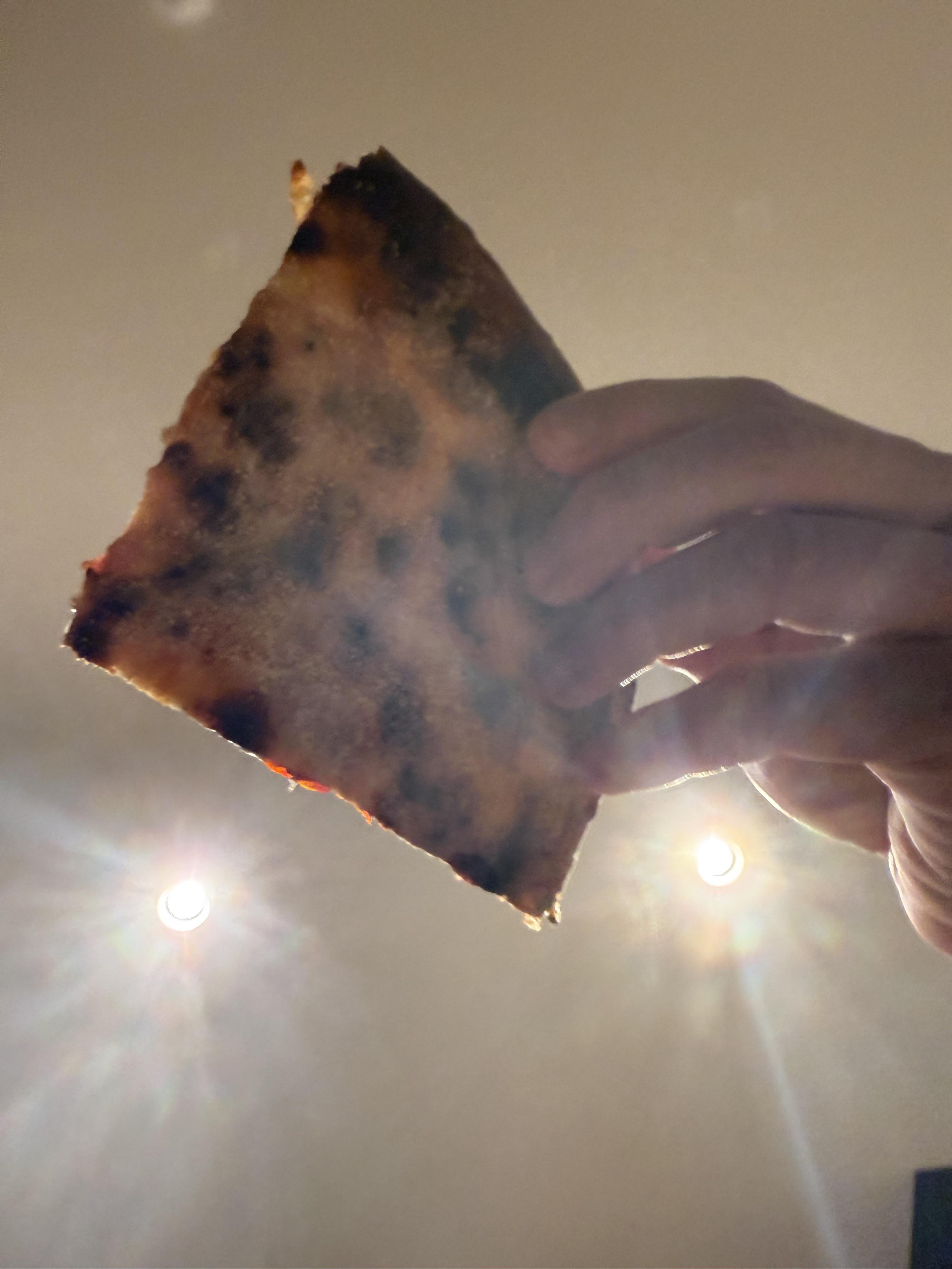 As long as it doesn’t taste ashy, and the crispy burnt bites you do get fade quickly to pizza’y goodness, I don’t think it is burnt.