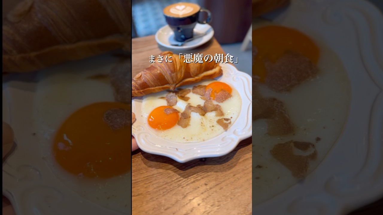 ピエモンテ産の白トリュフ、茨城県産の奥久慈卵の目玉焼きを使った、悪魔的なビジュアルの朝食!白トリュフは1g単位で追加可能!濃厚でコク深い半熟のとろとろ卵と、香り高い白トリュフが至福の組み合わせ!