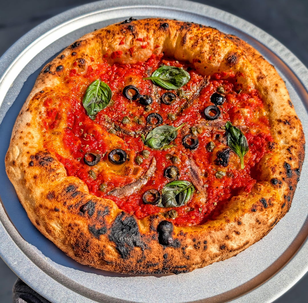 Baked in Gozney Roccbox at 800f for 90 seconds total with a few turns every 20 seconds or so.