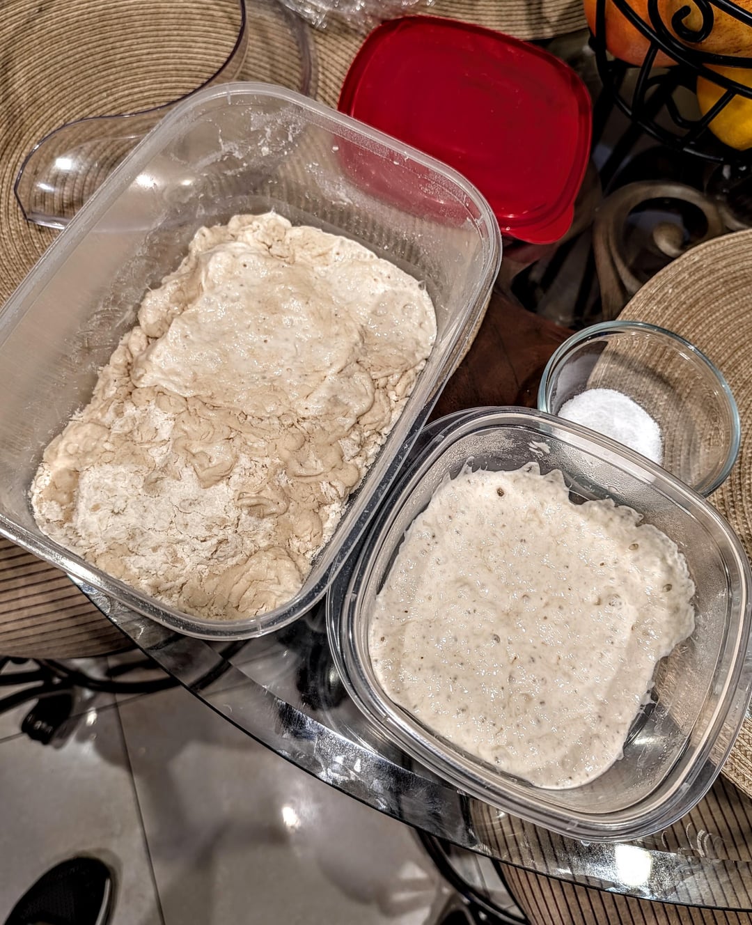 Next day mixed, and added 12.5g of sea salt. Refreshed with 1g fresh yeast & 15g water.