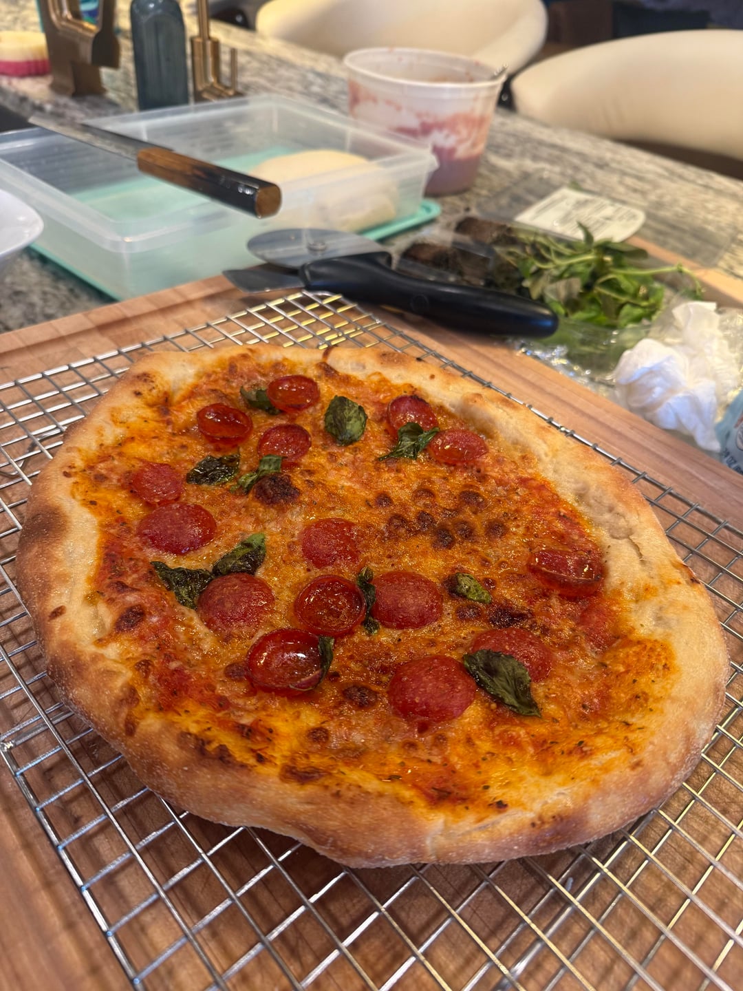 65% hydration, New York style dough cooked on my RecTec on a pizza stone.