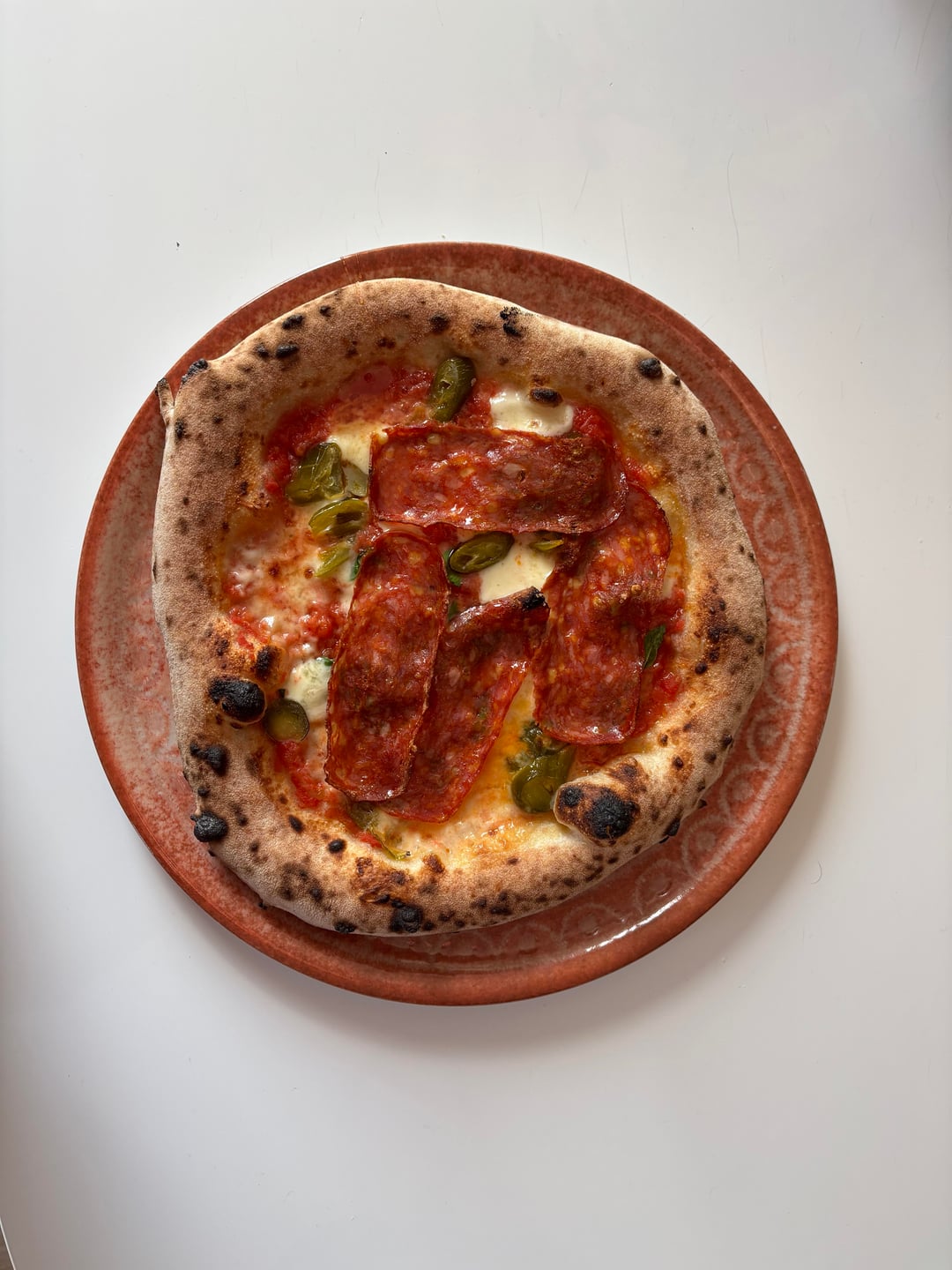 Tomatoes, mozzarella, spianata piccante, jalapeno, basil