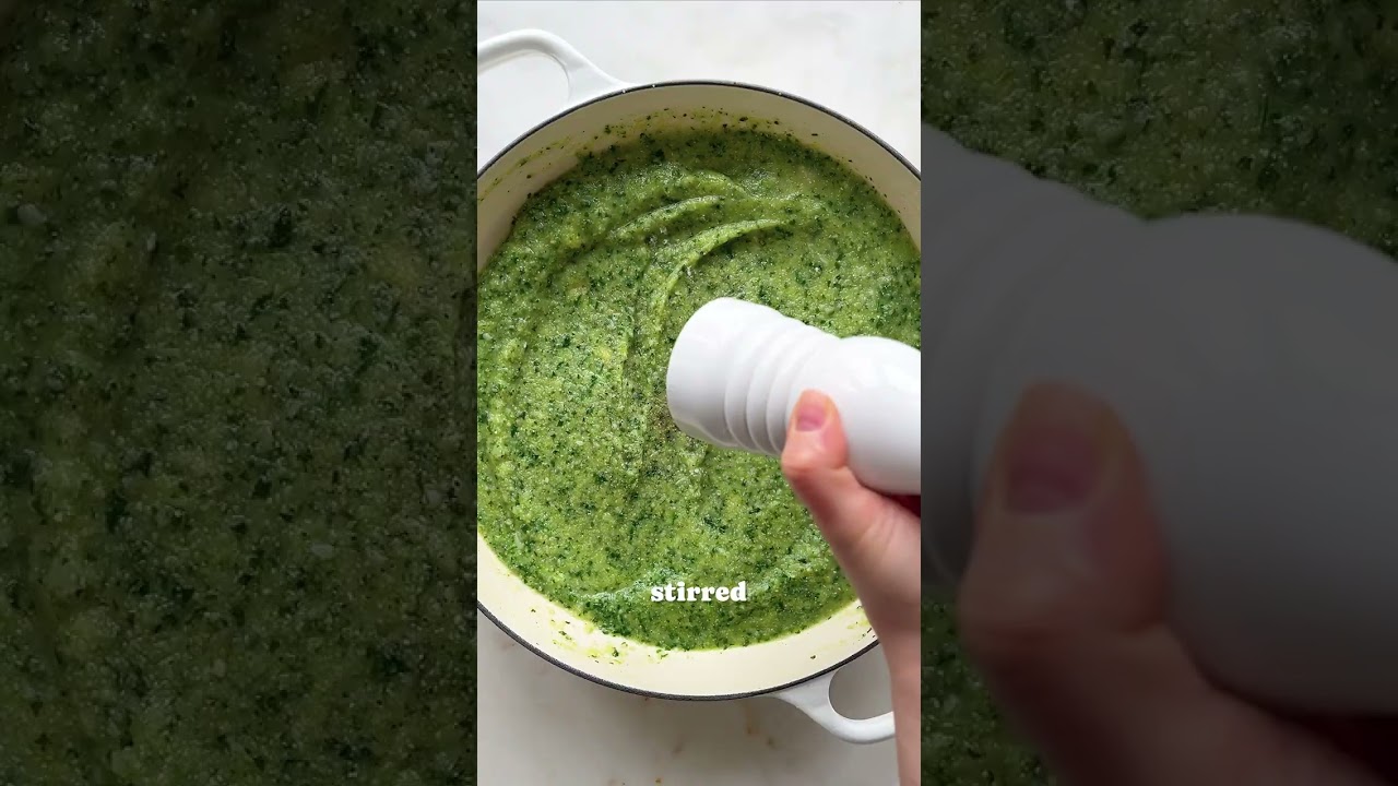 1. Wilt the spinach and kale leaves in a pan of shallow water. Once wilted, drain through a colander. Place the spinach and kale in a @MagimixVideos Food processor (4200XL model featured), along with the Superstraccia, minced garlic and pour in 2 tablespoons of the olive oil. Blend until smooth and creamy, then set aside.