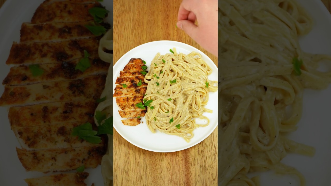 Here’s the recipe ⬇️ Ingredients 300g fettuccine 2 chicken breasts, sliced in half horizontally 1 tsp salt 1/2 tsp black pepper 1 tsp garlic powder 1/2 tsp onion powder 1/2 tsp smoked paprika 1/2 tsp italian herbs 1 tbsp olive oil 2 tbsp butter 3 cloves garlic, minced 250ml (1 cup) thickened cream 60ml (1/4 cup) reserved pasta water 80g (1 cup) finely grated Parmesan 1/2 tsp black pepper Salt, to taste Fresh parsley, chopped (optional)