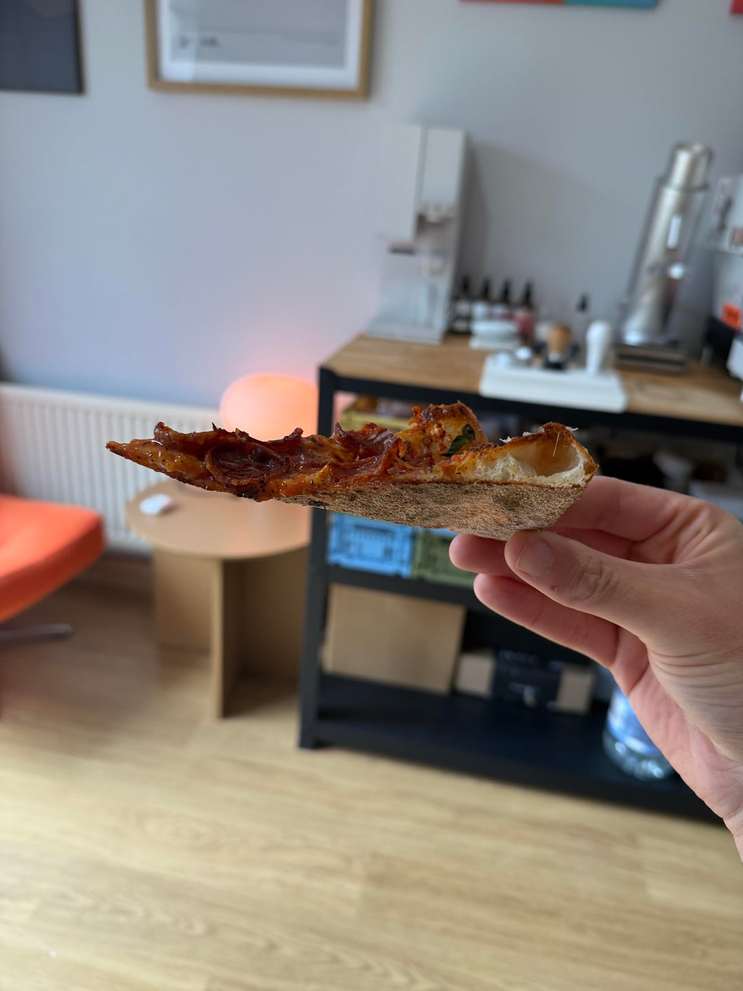 Fourth time making pizza in my Ooni volt, looking for feedback. Feel like I could've worked some of the air out the crusts a little more as one side is a little puffier than I'd like…but overall I'm pretty happy. Dough recipe in the picture as well
