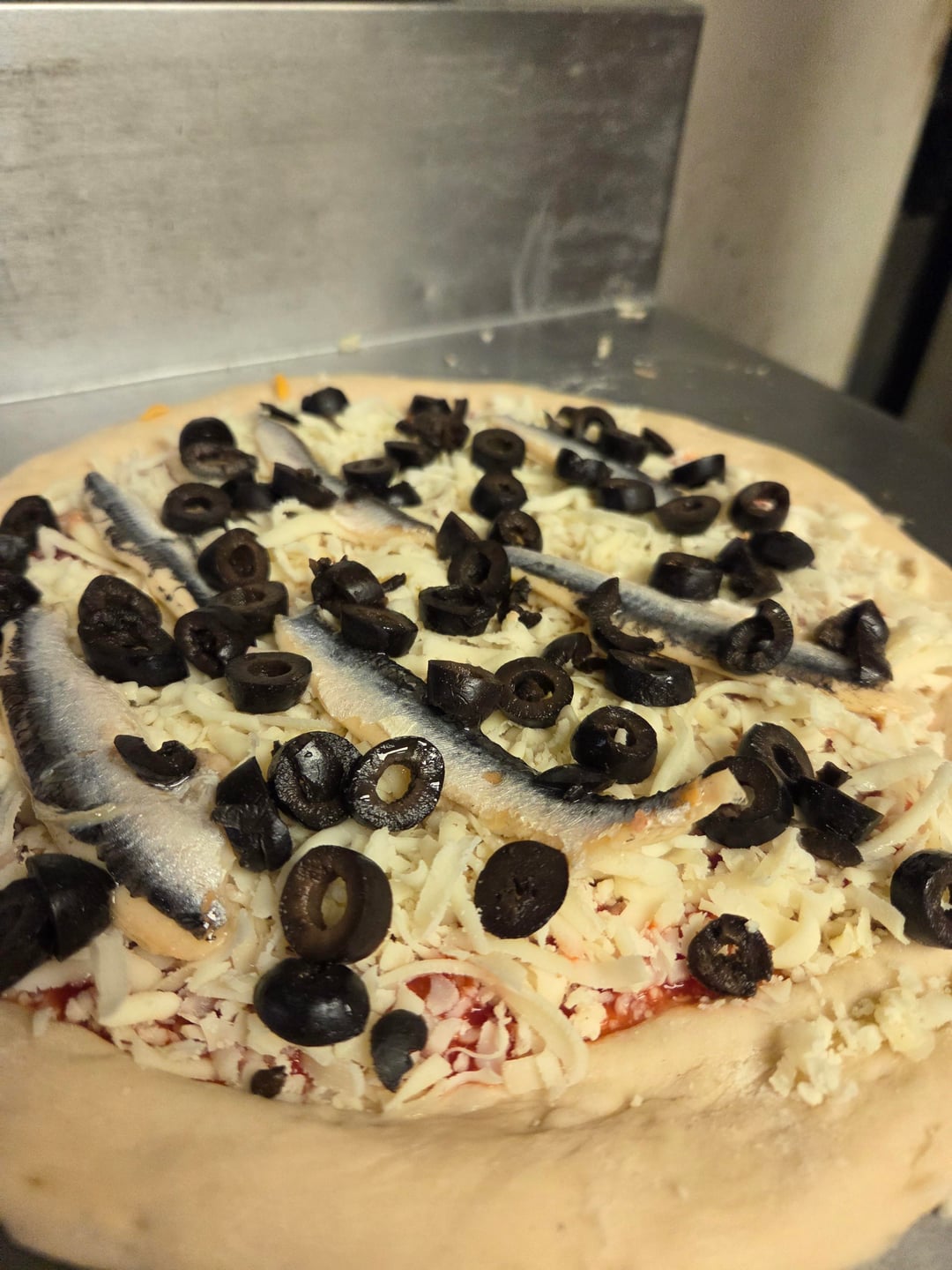Those anchovies look like boquerones, which are in my opinion the best by far. They’re very savory, but not nearly as fishy tasting as the regular anchovies you get from a can. I would tear into that pizza.