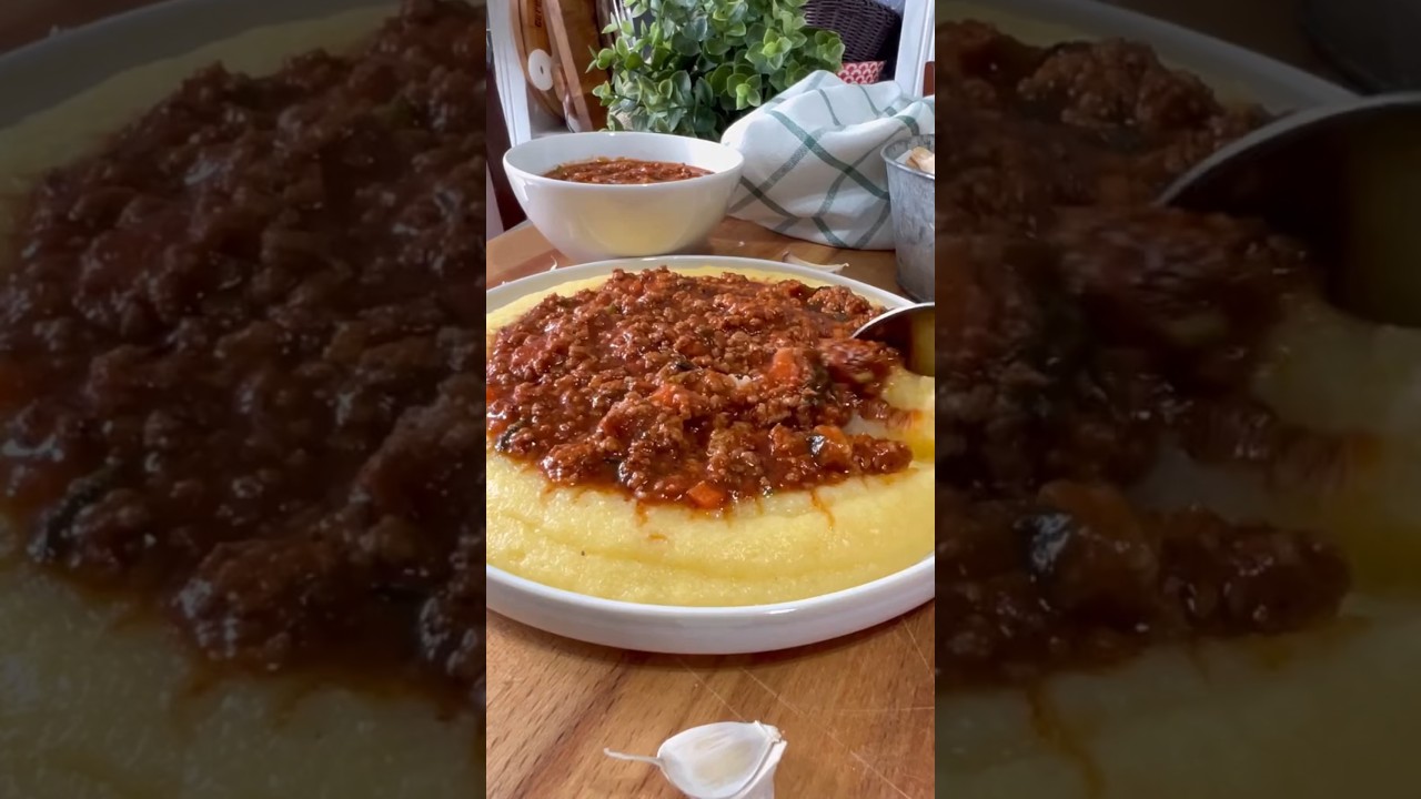In questa ricetta preparo un delizioso ragù di manzo e maiale con pomodoro, basilico e olio extravergine d’oliva, servito sopra una polenta morbida con scamorza filante.