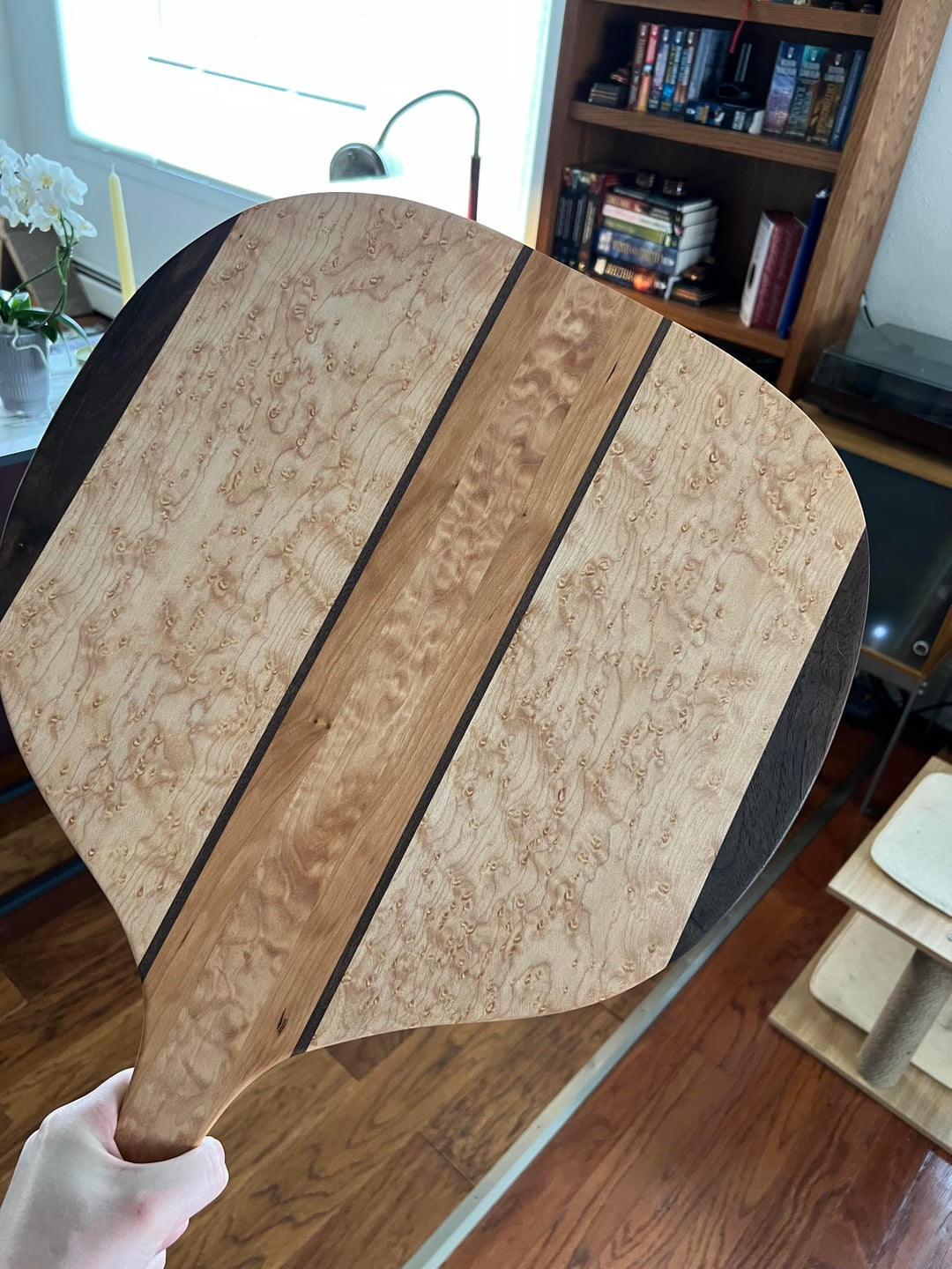 My uncle hand crafted these and gifted them as wedding gifts! by Joebearrr NORMAL OVENpizza 4 Comments Horror-Stand-3969 6 days ago The peel in the first photo is absolutely gorgeous. Almost seems a shame to use it Skirtsteakforlife 6 days ago Pickleball paddle? The_BhagRon 6 days ago Bird’s Eye Maple. Nice. digdugdoink 6 days ago Write A CommentYou must be logged in to post a comment.