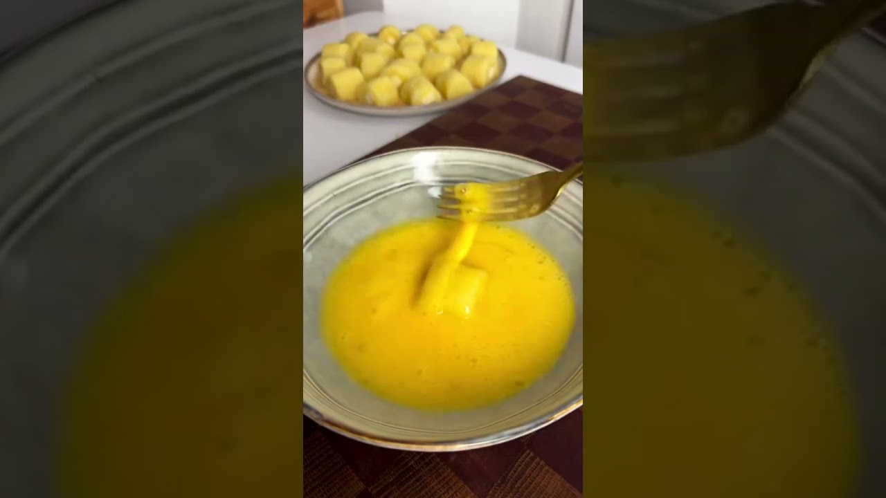 Poi passiamo tutto nell’uovo e nel pangrattato e cuociamo nella friggitrice ad aria per 7 minuti a 200 gradi, oppure friggiamo in padella con un po’ d’olio.
