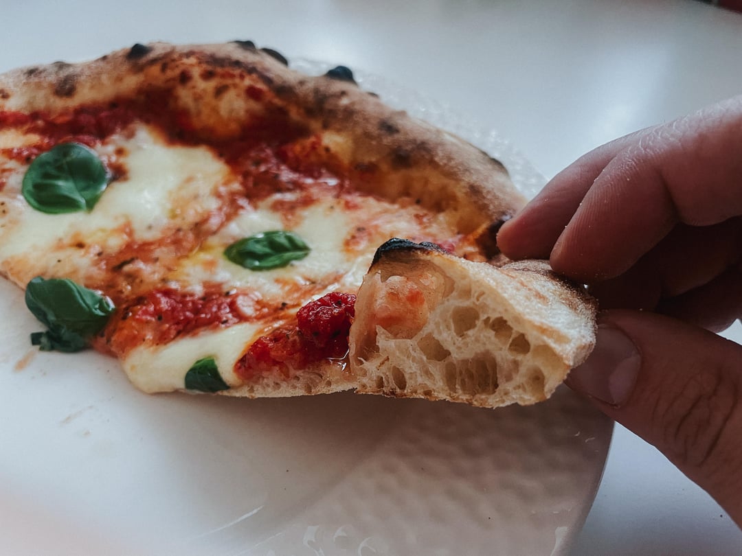 A quick recipe for great dough. Crunchy crust and an airy, soft interior. 64% hydration. The dough was easy to handle and worked out perfectly. If I get an unexpected pizza craving, I’ll definitely make this again. It’s best to use a stronger flour; I used a W300 Tipo 00.
