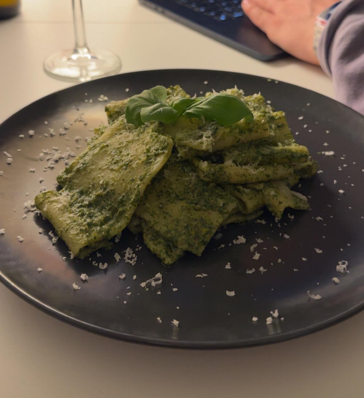 made a pesto with basil, parsley, roasted pistachios and almonds, grana padano DOP, lemon zest. schiaffoni pasta from „Garofolo“. topped with more grana. by Mr_Mauzel Homemade DishPastaWrite A CommentYou must be logged in to post a comment.