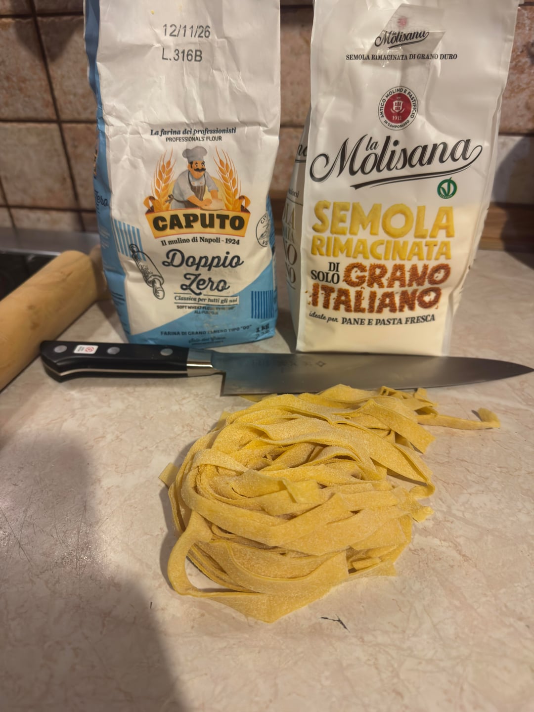 Used 50/50 00 flour and La Molisana Semolina. Mixed them by hand and then threw the eggs. I can say that the dough was quite hard to work with. Maybe because of the semolina? Should I use a different ratio next time?