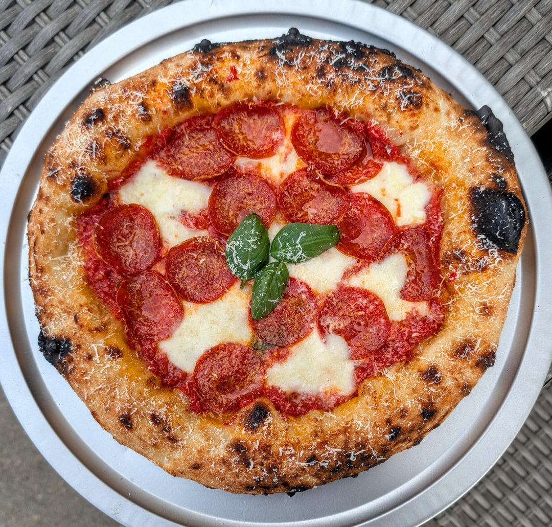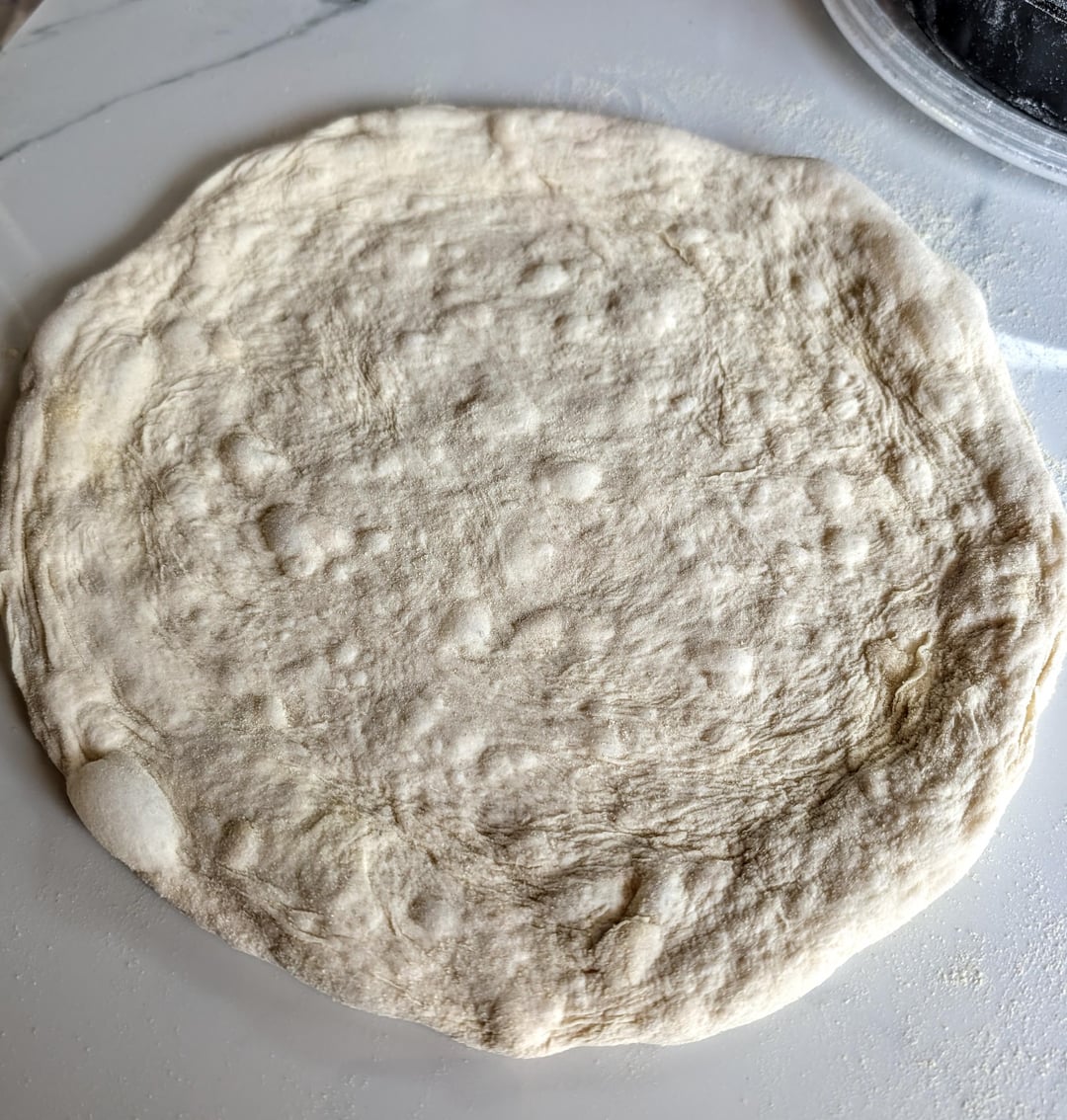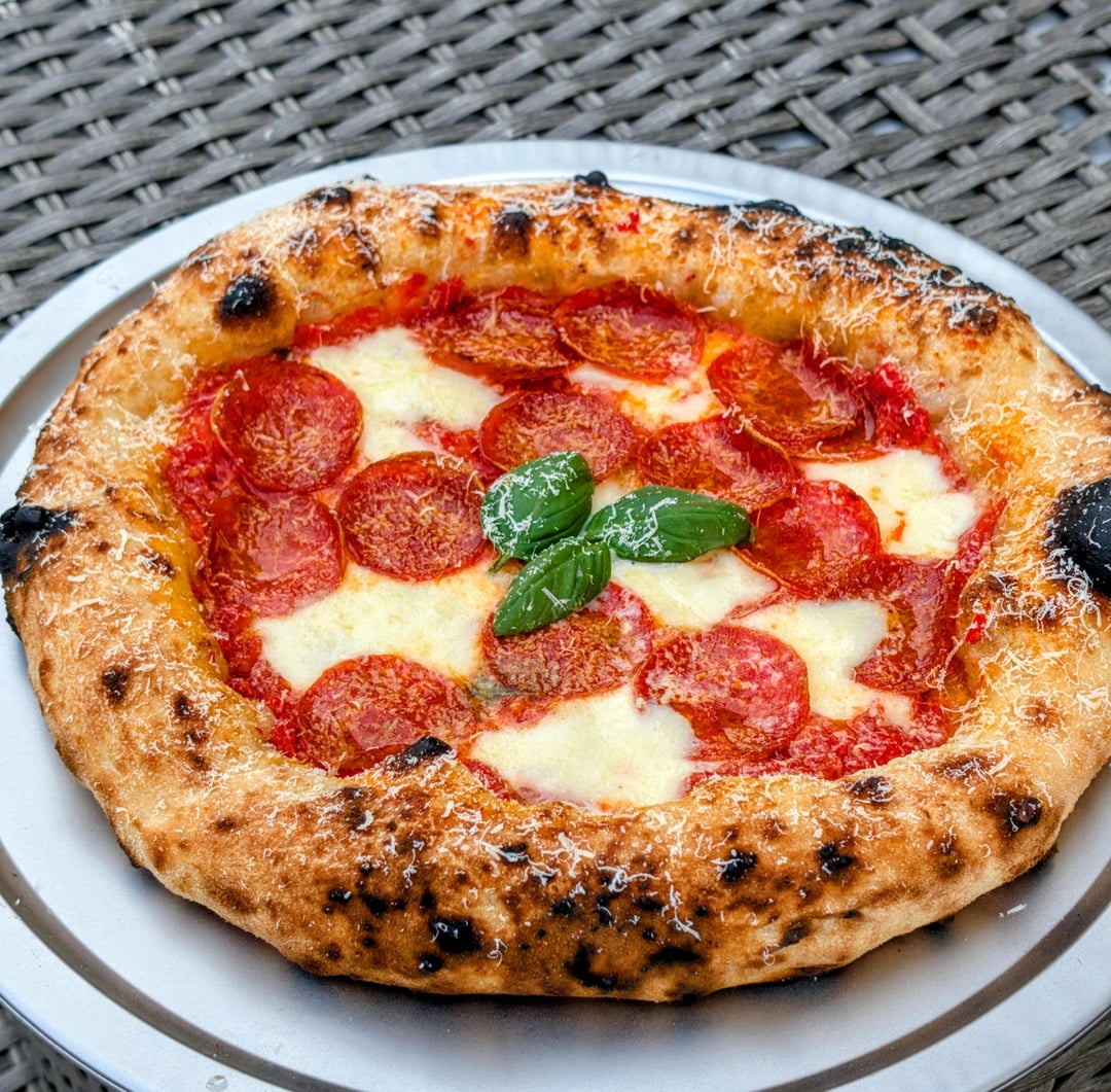 Pulled out 3 hours prior to cooking. Cooked in the Gozney Roccbox for just over a minute with a few rotations.
