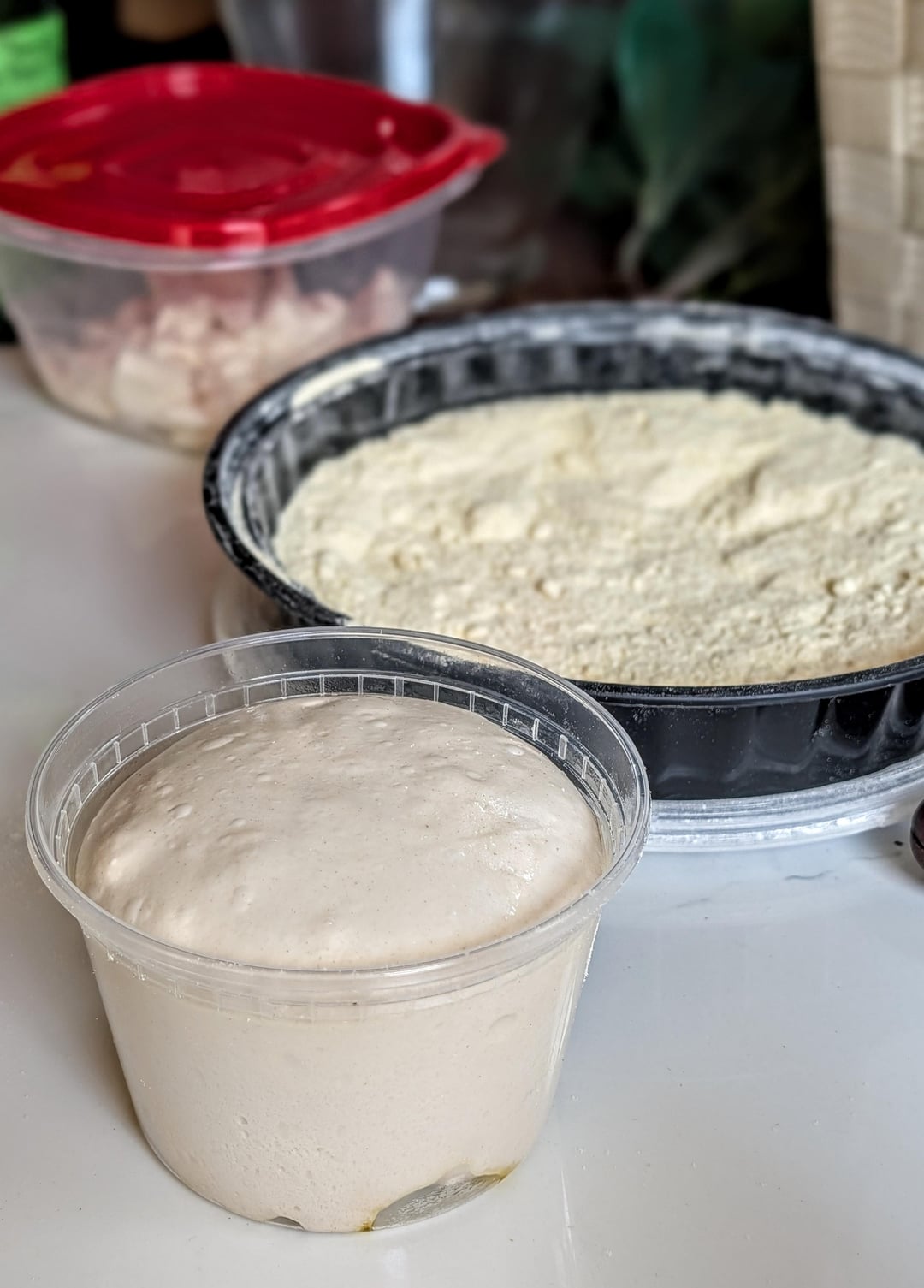 12hrs room ferment, 12hrs fridge. Next day, cut it up added it to the mixer, along with the salt and the final 50% of the cold water slowly. Mixed for 4 minutes slow speed, and then brought it up medium speed for the final 7-8 minutes or until 75f.