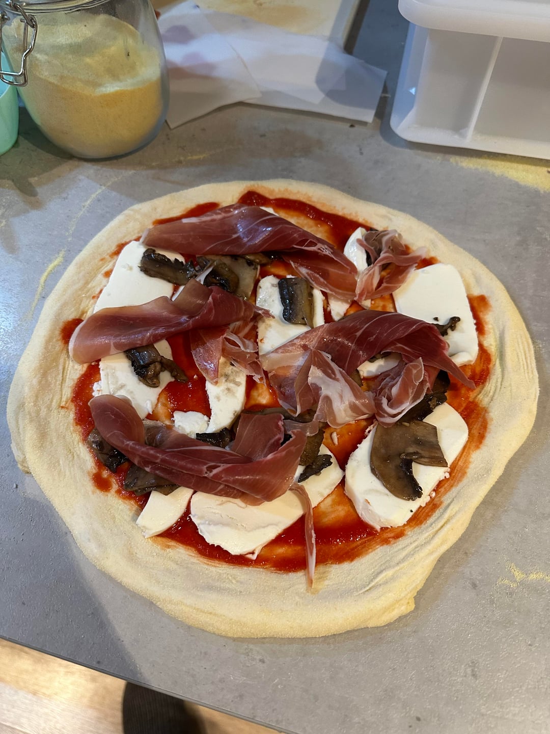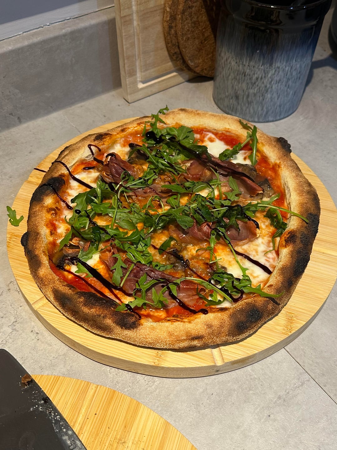 Prosciutto, garlic mushroom pizza topped with rocket and a balsamic glaze, and a garlic bread by Left_Blackberry_4081 outdoor ovenpizzaWrite A CommentYou must be logged in to post a comment.