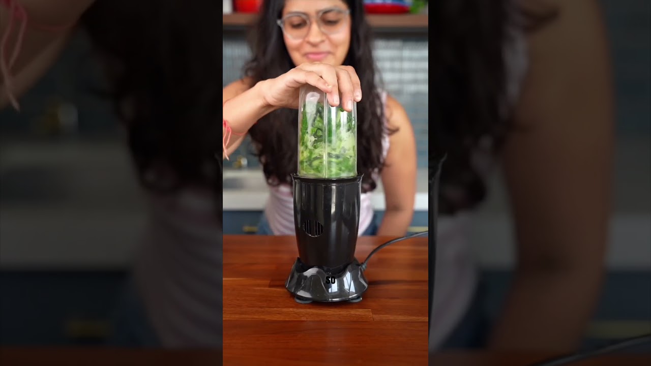 Blanch 1 bunch spinach in hot water and then plunge it in ice water to stop cooking.