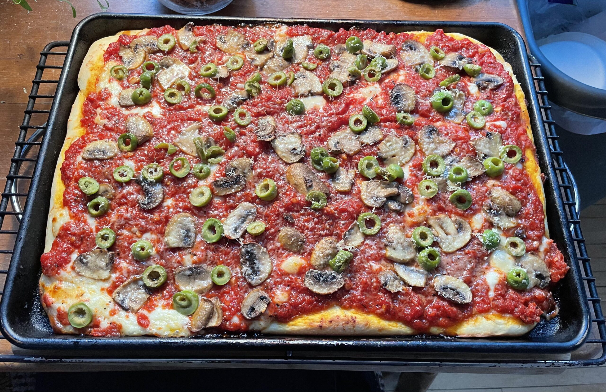 Sicilian with sliced mozz, castelvetrano olives, mushrooms and spicy sauce.Came out well.by mahrog123 NORMAL OVENpizzaWrite A CommentYou must be logged in to post a comment.