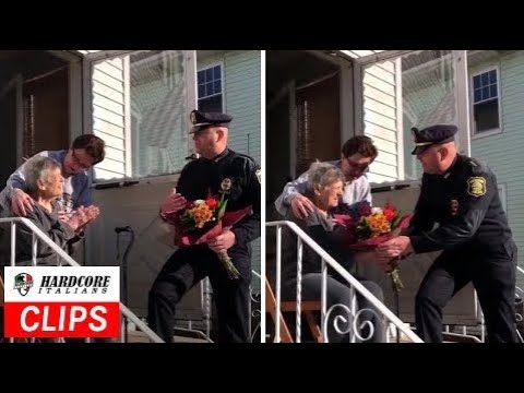 She was surprised by over a dozen officers lined up at her doorstep to personally thank her with flowers, and her very own “PIZZELLE LADY” award.