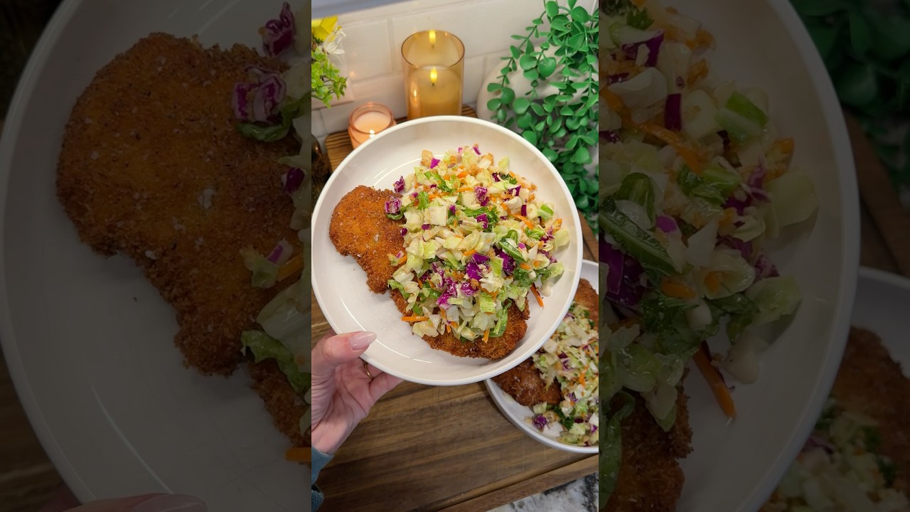 this spin on chicken milanese is the best for a simple, quick dinner free of seed oils thanks to the new @TaylorFarmsVision Zero Seed Oil Chopped Kits! crispy chicken cutlets fried in avocado oil and topped with an Italian salad- so delicious & full of good ingredients! #GetYourSaladTogether #ad
